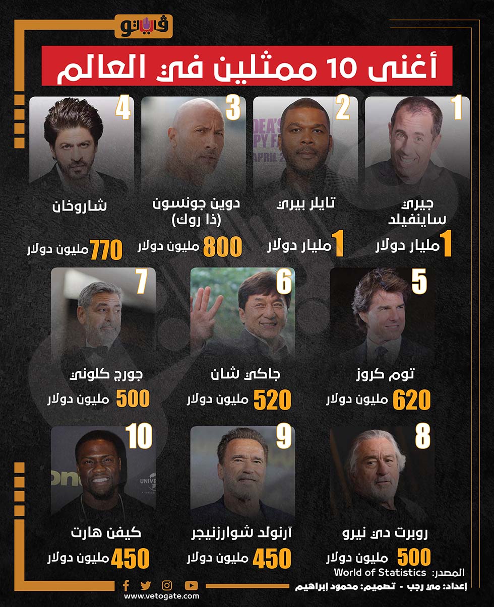 أغنى 10 ممثلين في العالم (إنفوجراف) الخميس 26/يناير/2023 - 12:57 م 1/26/2023 12:57:38 PM روبرت دي نيرو مى رجب شارك طباعة 18 حجم الخط شارك طباعة أغنى 10 ممثلين في العالم اغني اغني ممثلين أغنى 10 ممثلين في العالم اغني ممثلين ممثلين
