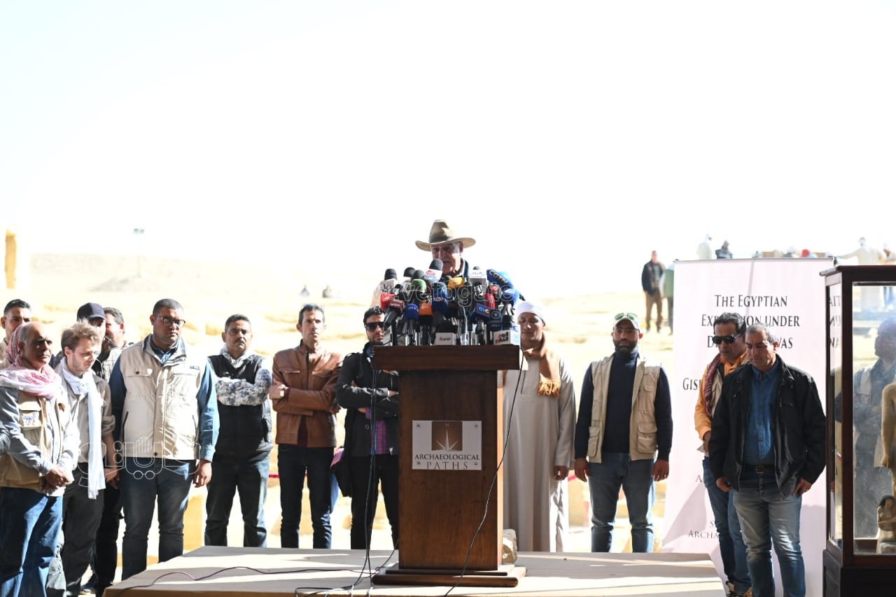 زاهي حواس يعلن اكتشاف أول مومياء غير ملكية مغطاة بالذهب في سقارة