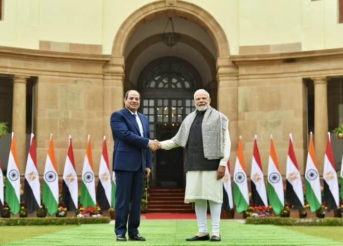 وأوضح السفير بسام راضي ان زيارة الرئيس السيسي للهند تتزامن مع مرور ٧٥ عامًا على إقامة العلاقات الدبلوماسية بين مصر والهند