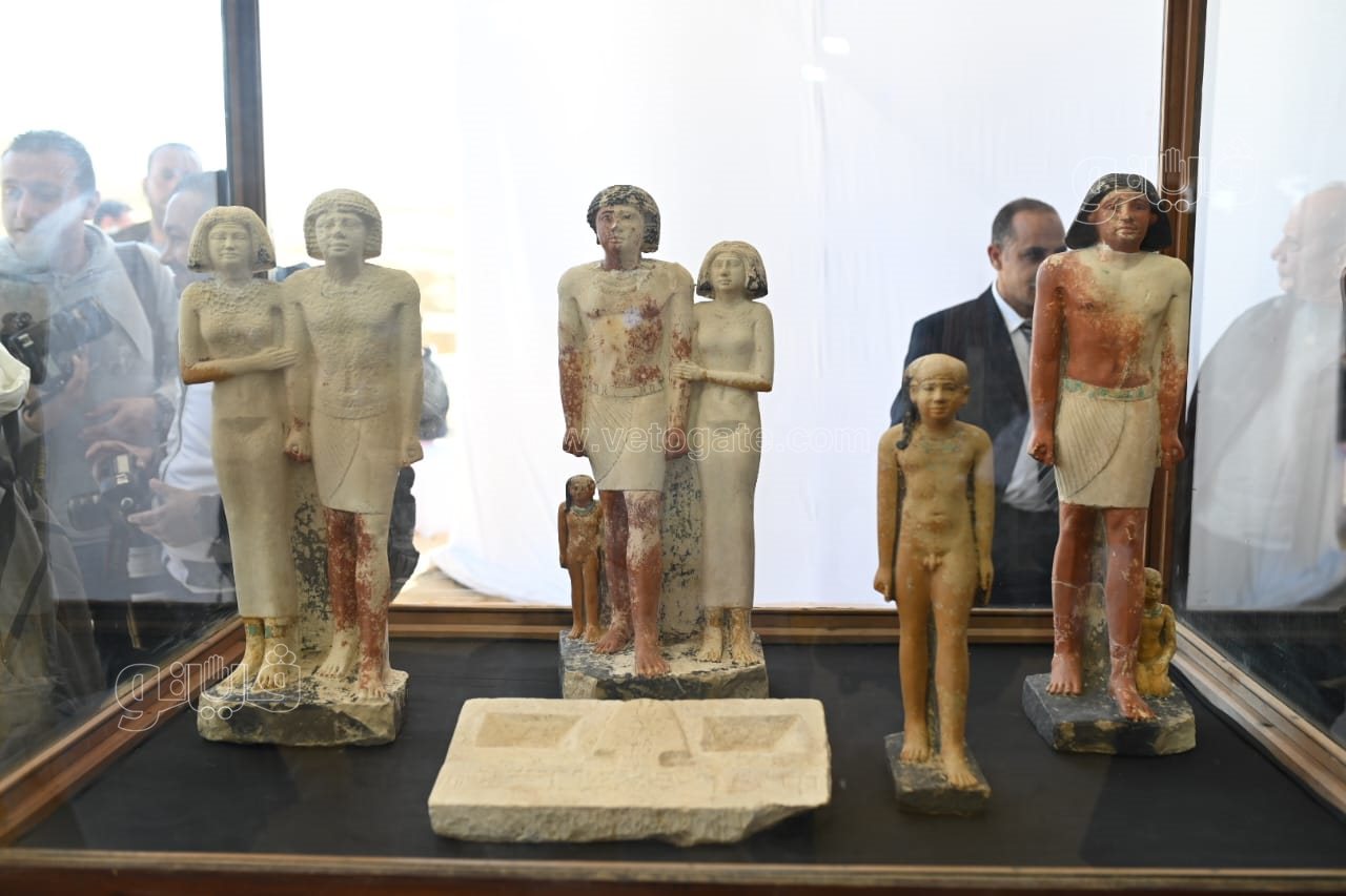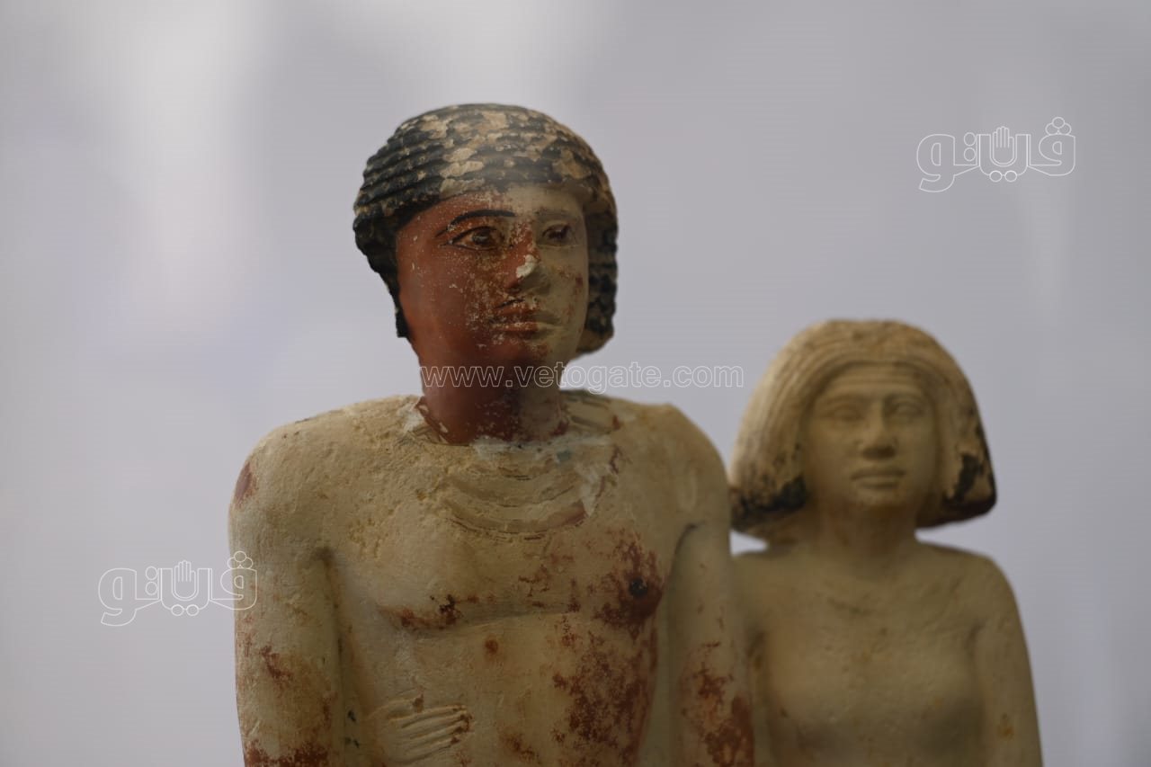 وأشار الي أنه تم العثور علي تمثال لشخص يظهر واقفا وبجواره زوجته تمسك بقدمه والي الجانب الآخر ابنته تحمل أوزة.