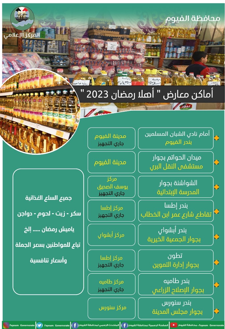 خريطة معارض أهلا رمضان بمحافظة الفيوم