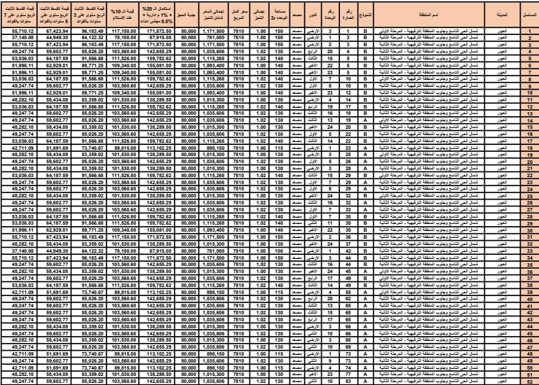 شقة مساحة 150 مترا مربعا قيمة الشقة 1,171,500 جنيه مصري.