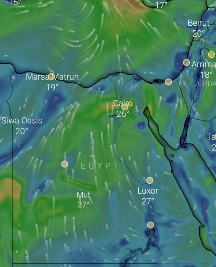 وقالت هيئة الأرصاد الجوية عبر صفحتها الرسمية على موقع التواصل الاجتماعي فيس بوك:"مع أجواء مغبرة على شمال البلاد ونشاط للرياح الجنوبية الغربية المثيرة للرمال والأتربة على السواحل الشمالية والقاهرة الكبرى والوجه البحرى وشمال الصعيد ومدن القناة،يصاحبها انخفاض فى مستوى الرؤية الأفقية".