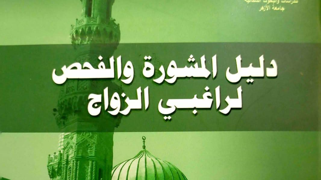 يقدم جناح الأزهر الشريف بمعرض القاهرة الدولي للكتاب لزواره من المقبلين على الزواج" دليل المشورة والفحص لراغبي الزواج"، ومقرر الدليل الدكتور جمال أبو السرور، مدير المركز الدولي الإسلامي للدراسات والبحوث السكانية، بجامعة الأزهر.