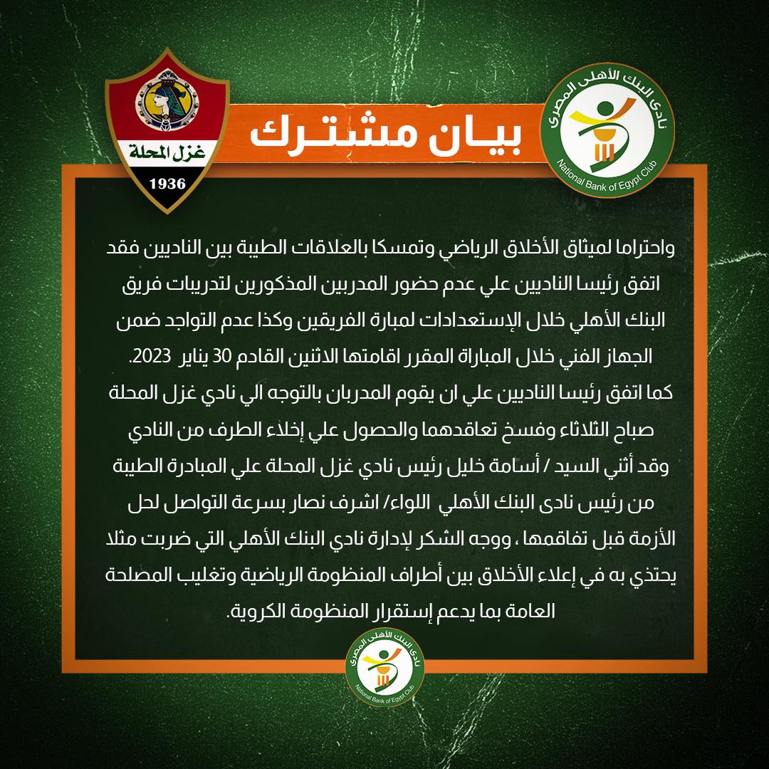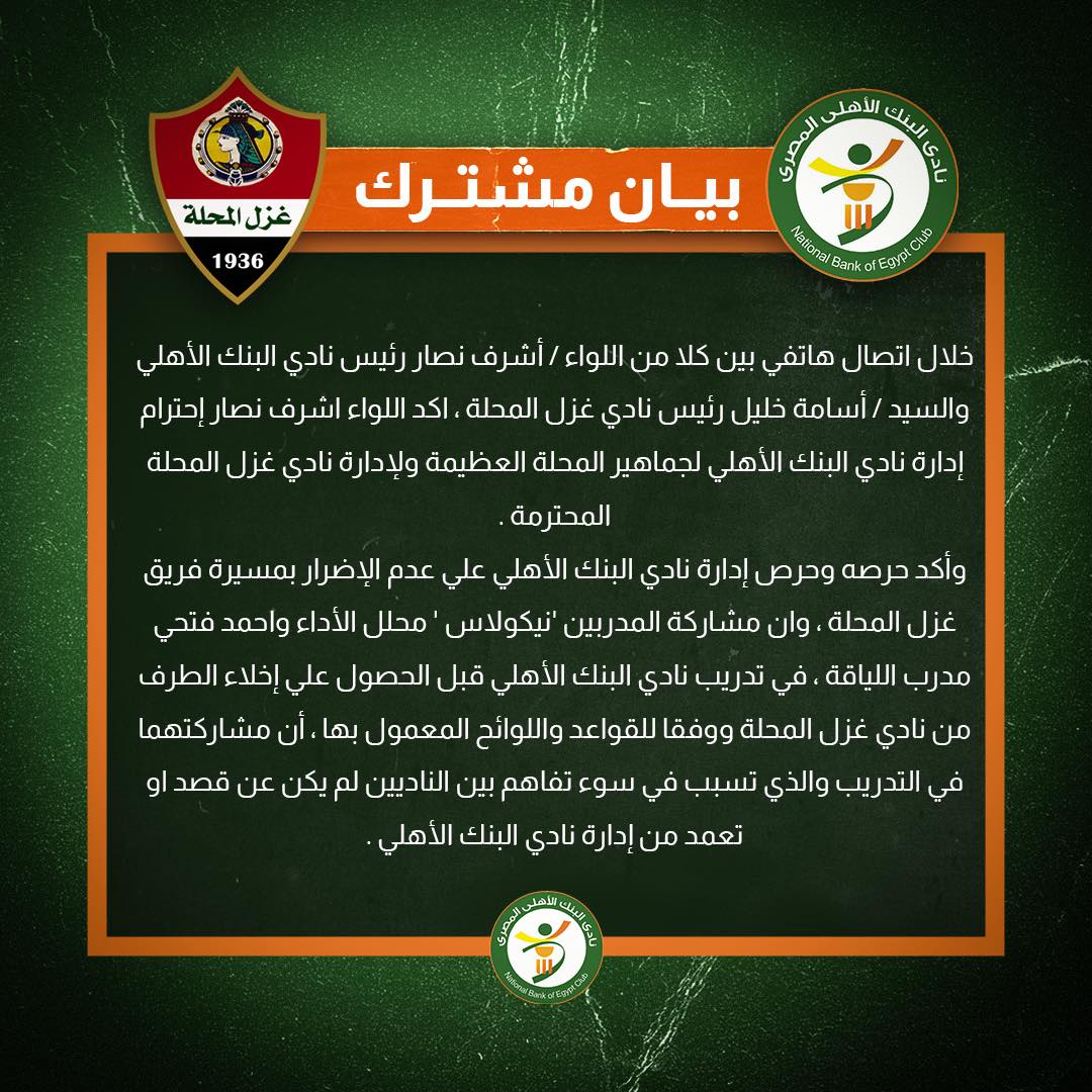 بيان مشترك من البنك الأهلي وغزل المحلة