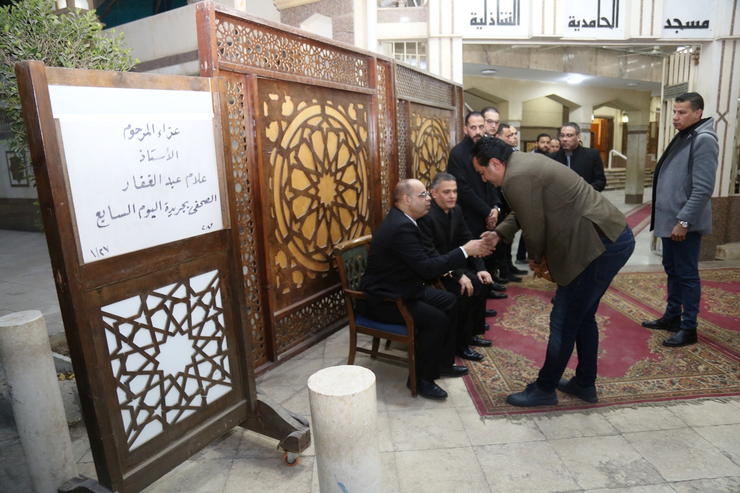 شارك عدد كبير من الصحفيين في عزاء الزميل علام عبد الغفار، رئيس قسم المحافظات بجريدة اليوم السابع، الذي أقيم في دار مناسبات مسجد الحامدية الشاذلية.