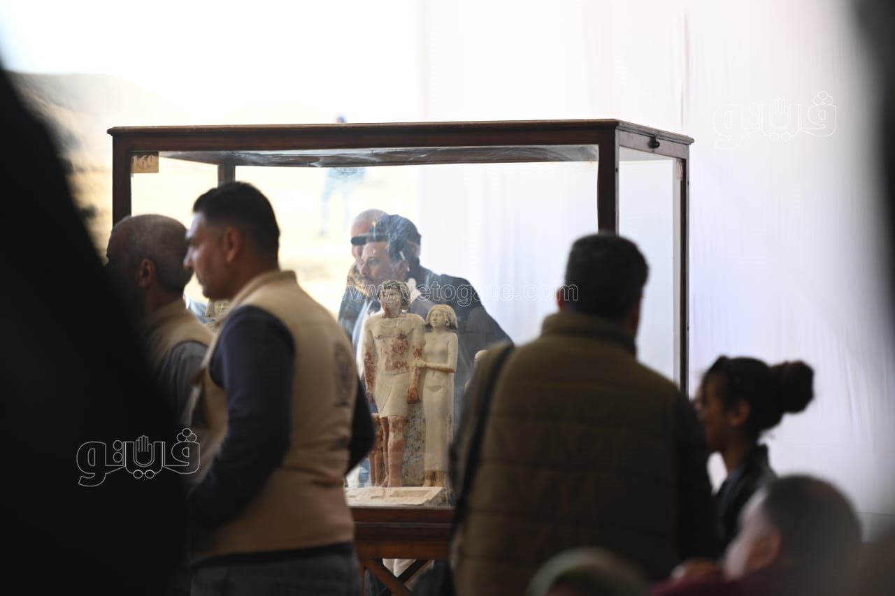 وأشار الي أنه تم العثور علي تمثال لشخص يظهر واقفا وبجواره زوجته تمسك بقدمه والي الجانب الآخر ابنته تحمل أوزة.