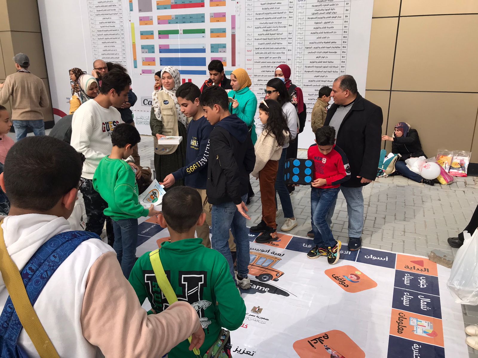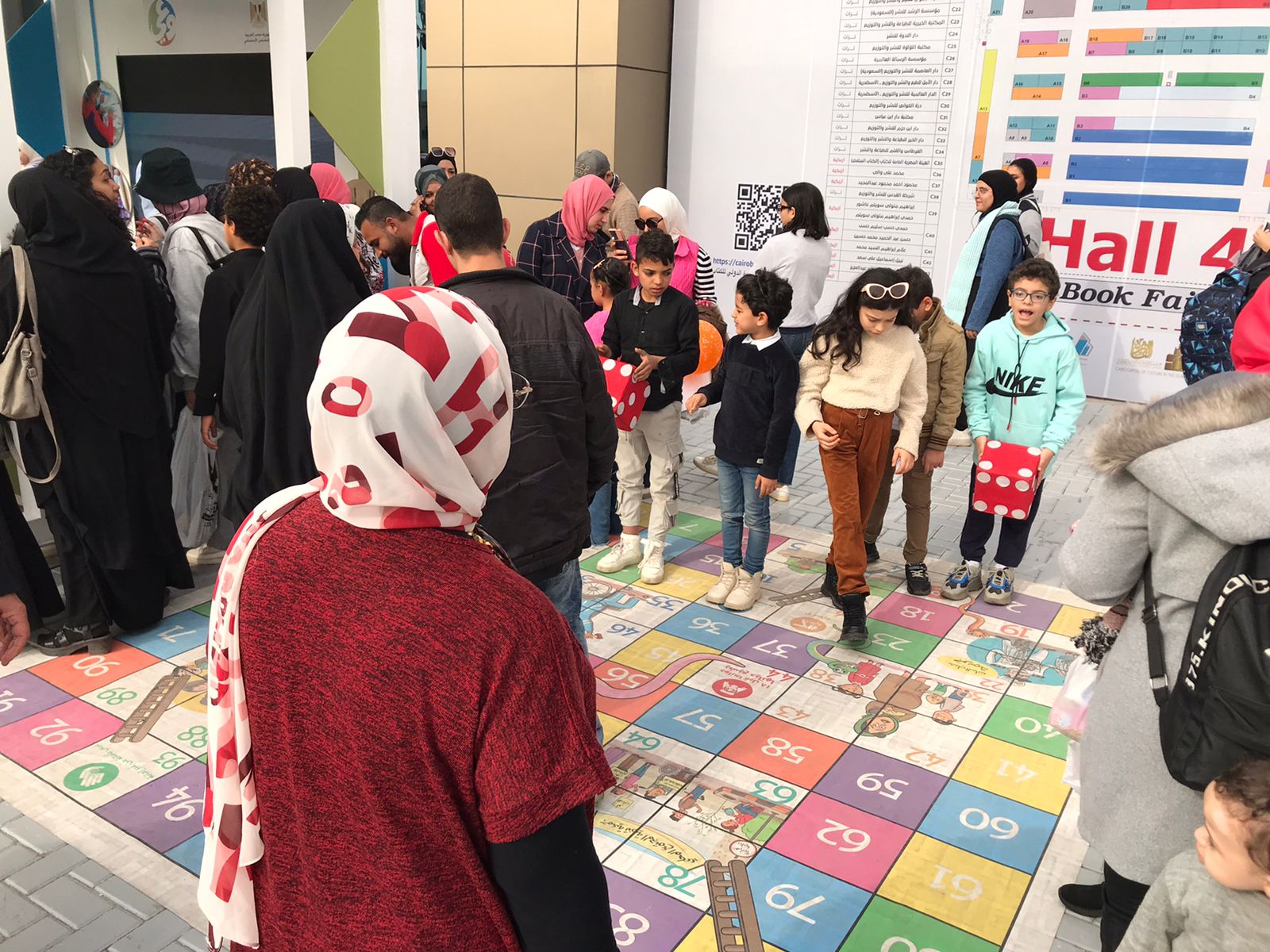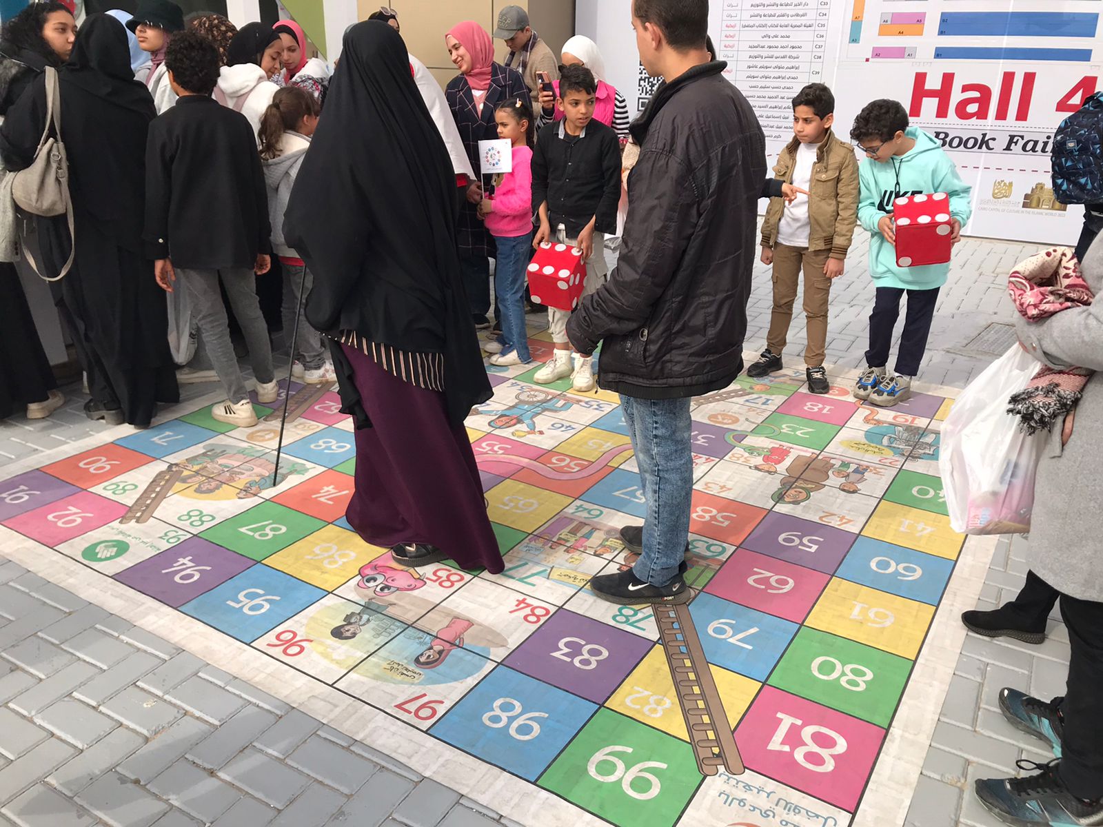 معرض الكتاب، حرص عدد كبير من أطفال معرض القاهرة الدولي للكتاب في نسخته الـ ٥٤ بالتجمع الخامس، على الاستمتاع بوقتهم بلعب السلم والثعبان وأوتوبيس المدرسة أمام قاعة ٤