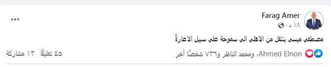فرج عامر يعلن استعارة سموحة لـ مصطفى ميسي من الأهلي