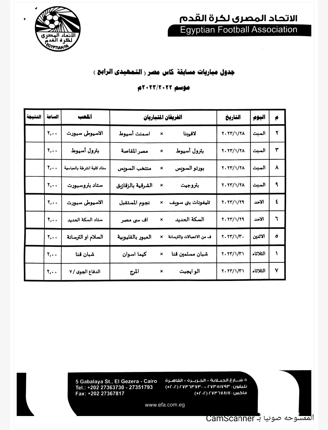 نتائج الدور التمهيدي الرابع من بطولة كأس مصر