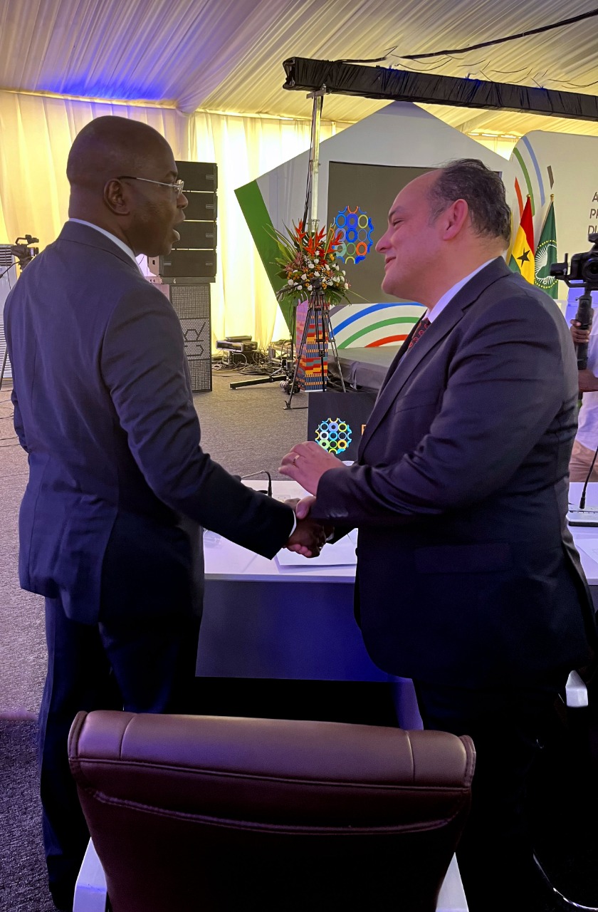 واشار الوزير إلى تقدير الحكومة المصرية للدور المحوري لدولة غانا في تفعيل اتفاقية التجارة الحرة القارية الافريقية AFCFTA واستضافة مقرها الرئيسي، لافتًا الى ان توقيع اول صفقة تجارية بين مصر وغانا في إطار الاتفاقية يعكس العلاقات المتميزة التي تربط البلدين والفرص الكبيرة امام الصادرات المصرية بالسوق الغاني.