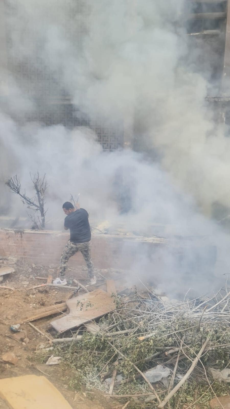 وتم فرض كردون أمنى بمحيط الحريق لمحاصرة النيران ومنع خطر امتداده لباقى المجاورات وتمت عملية إخماد الحريق، دون وقوع أى إصابات.