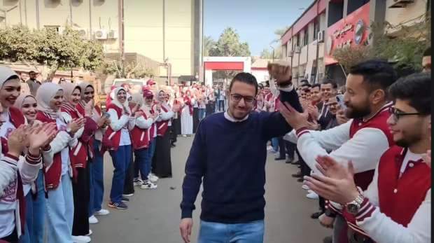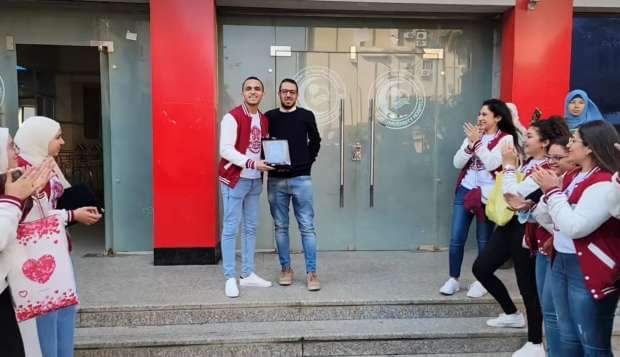 وقبل بدء الاحتفالية فاجأ الطلاب، زميلهم "أحمد محمد حسن شاويش" بتكرميه على مجهوداته معهم خلال السنوات الماضية ومساعدتهم في الدراسة، بعمل ممر شرفي له، أحمد محمد حسن شاويش، داخل مبنى الكلية، واستقباله بالتصفيق والهتاف التشجيعي له، وتقديم درع الدفعة له.