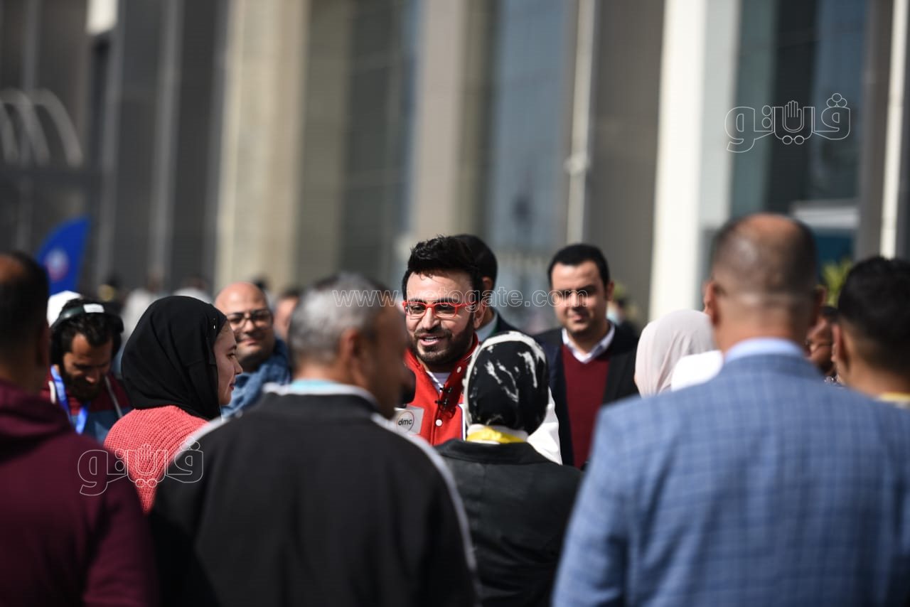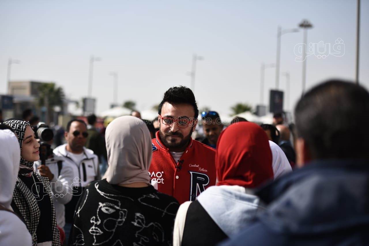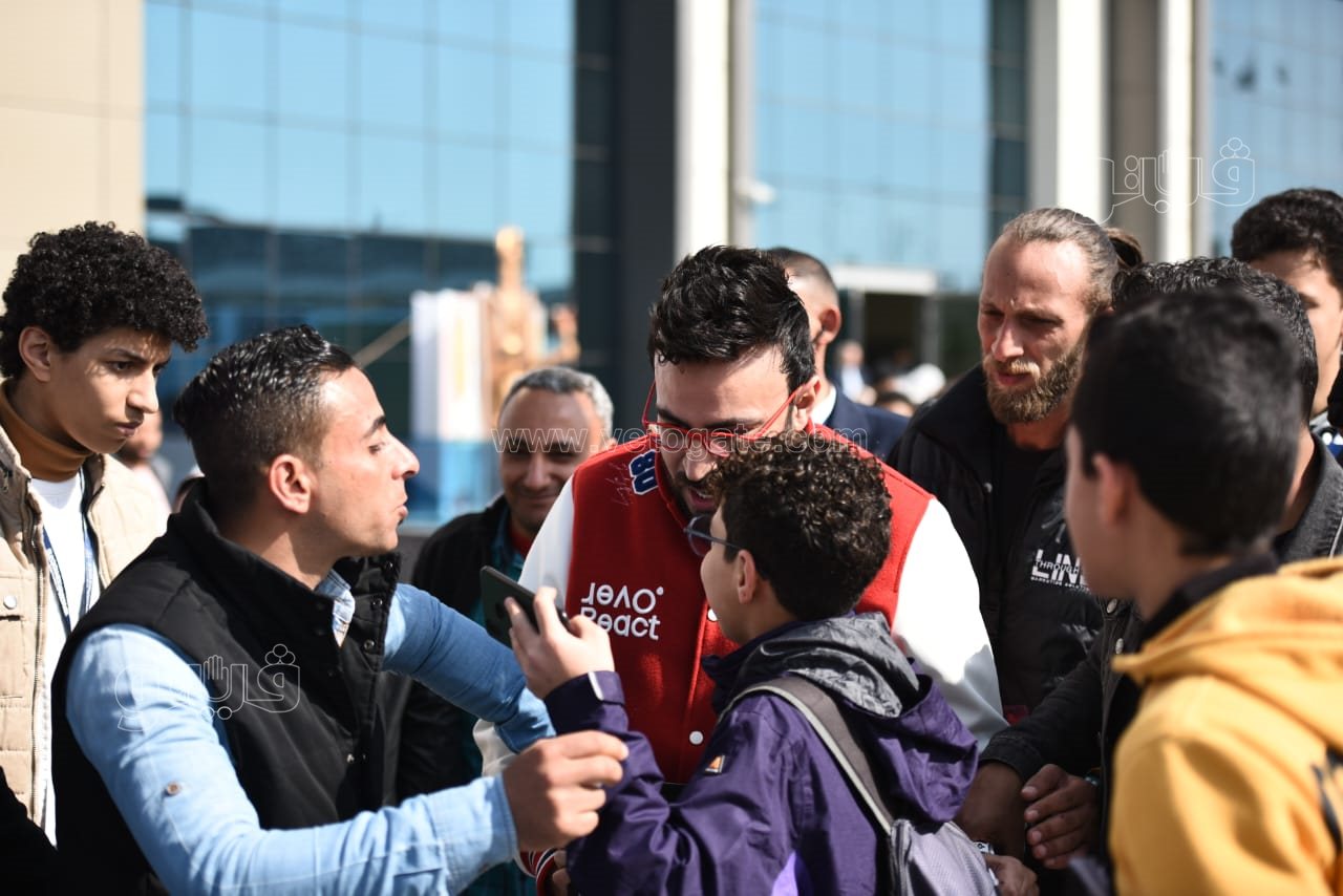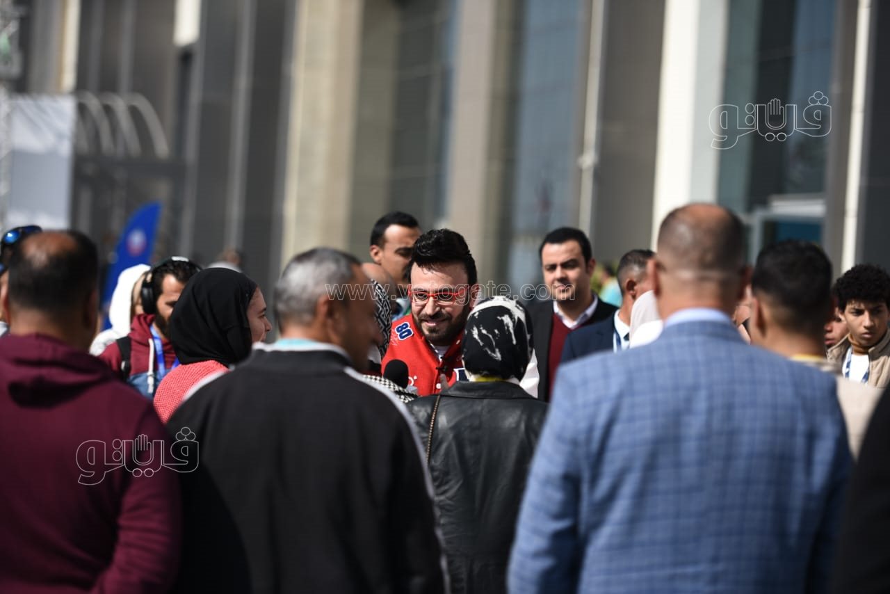 وحرص أحمد يونس على التقاط صور تذكارية مع جمهوره ومحبيه الذين تجمعوا حوله فور وصوله، كما داعب عدد من جمهوره بتسجيل لقاءات معهم أثناء تواجده في المعرض.