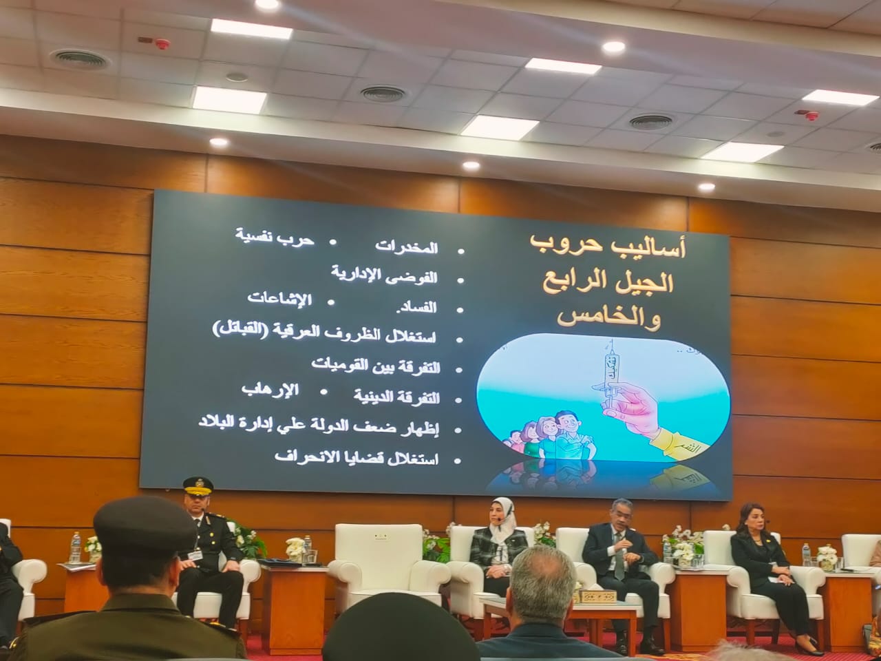 شهدت الندوة التي نظمتها أكاديمية الشرطة، عرض فيلم وثائقي يكشف جهود وزارة الداخلية لنشر الوعي المجتمعي للحفاظ على المجتمع من الشائعات خلال ندوة الوعي العام احد دعائم الاستقرار الوطني.
