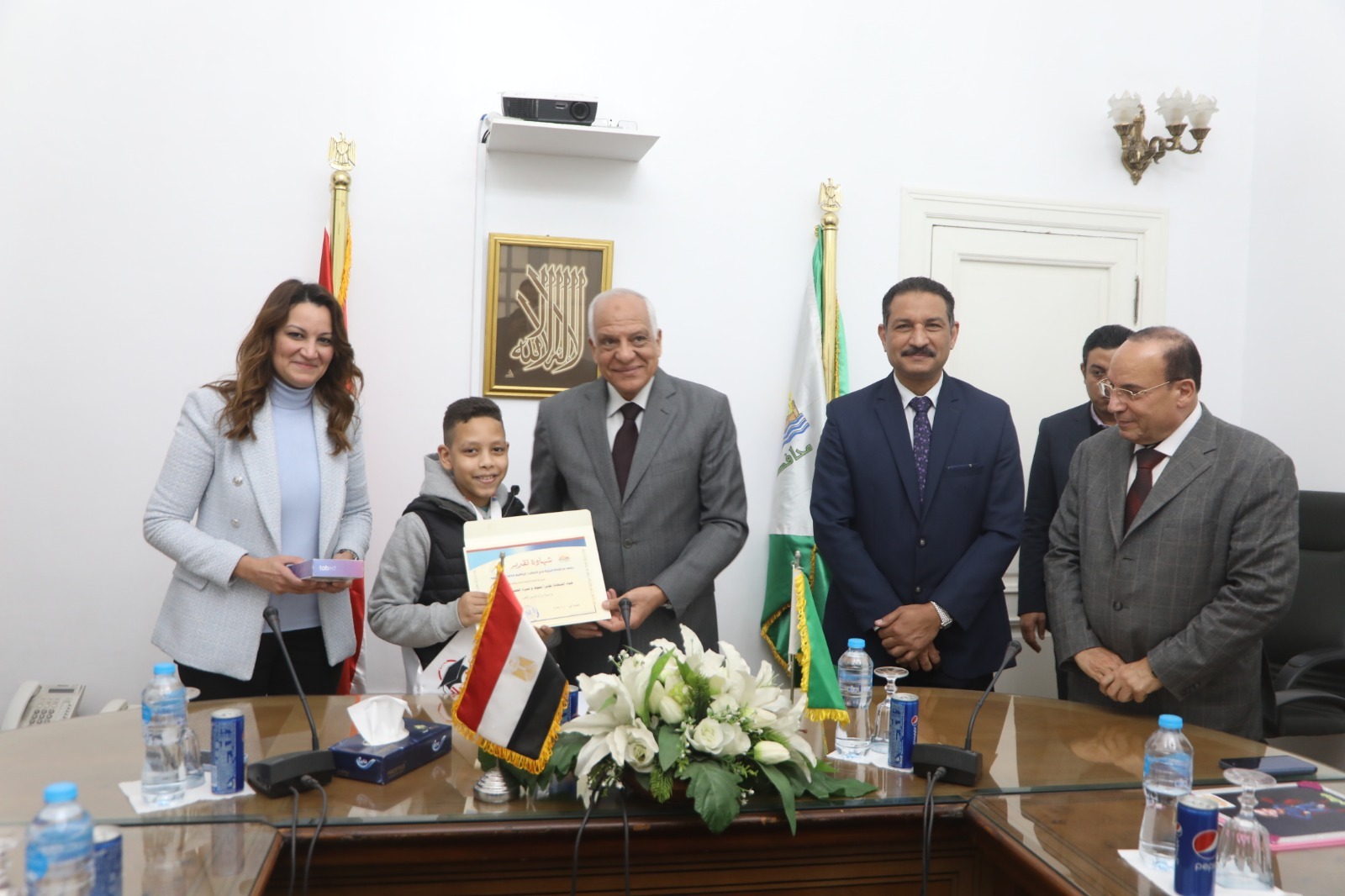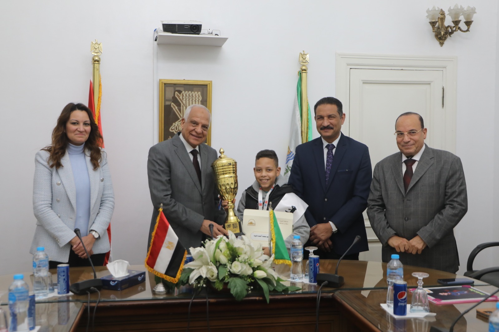 جاء ذلك خلال مراسم تكريم المحافظ للطالب إبراهيم محمد أحمد داوود الطالب بالصف السادس الإبتدائى بمدرسة الصفا الخاصة بإدارة بولاق الدكرور التعليمية وذلك لحصوله على ( يوسى ماس أول جمهورية 2016 ) و( كنكن أول جمهورية 2021 ) و( المركز الأول على مستوى العالم بدولة الإمارات العربية المتحدة 2022 ) و( كونى دو – رياصة دفاع عن النفس ) مركز أول جمهورية فى مرحلته السنية 2019، 2022 ).