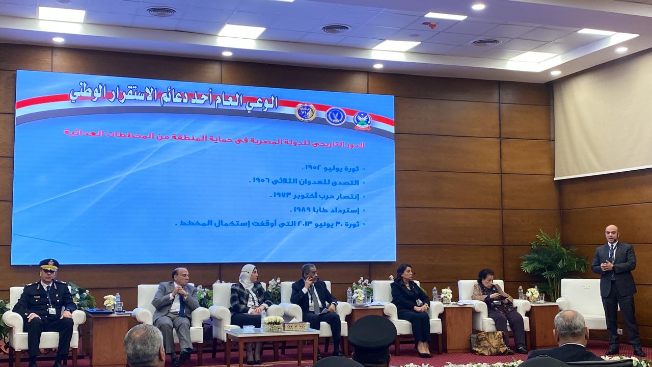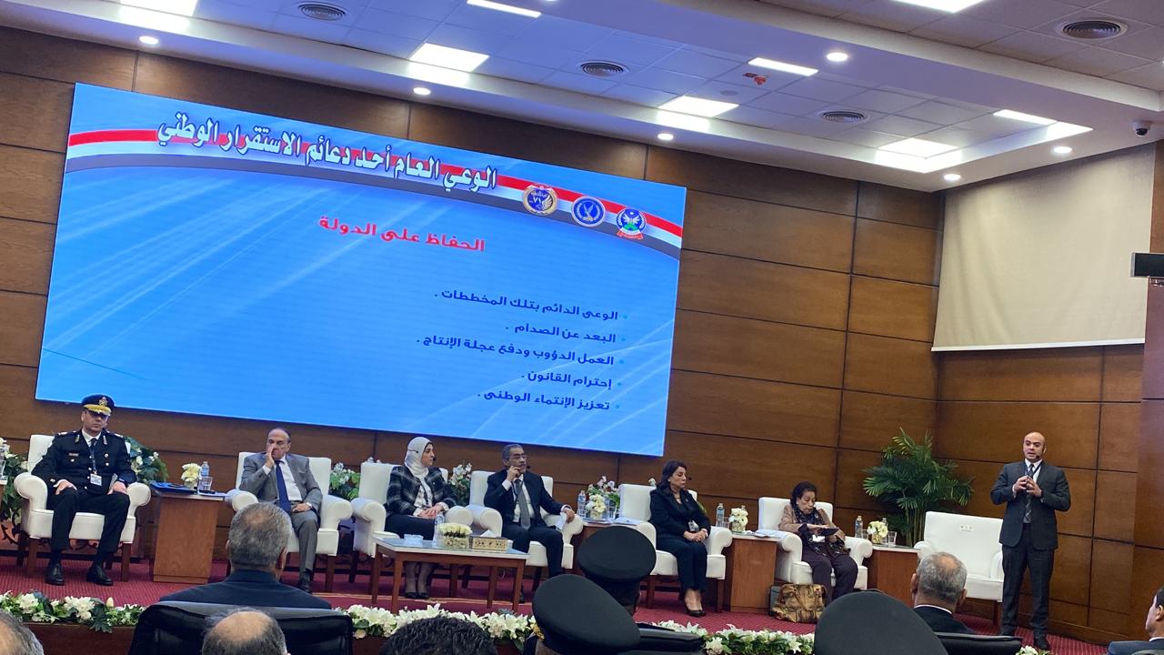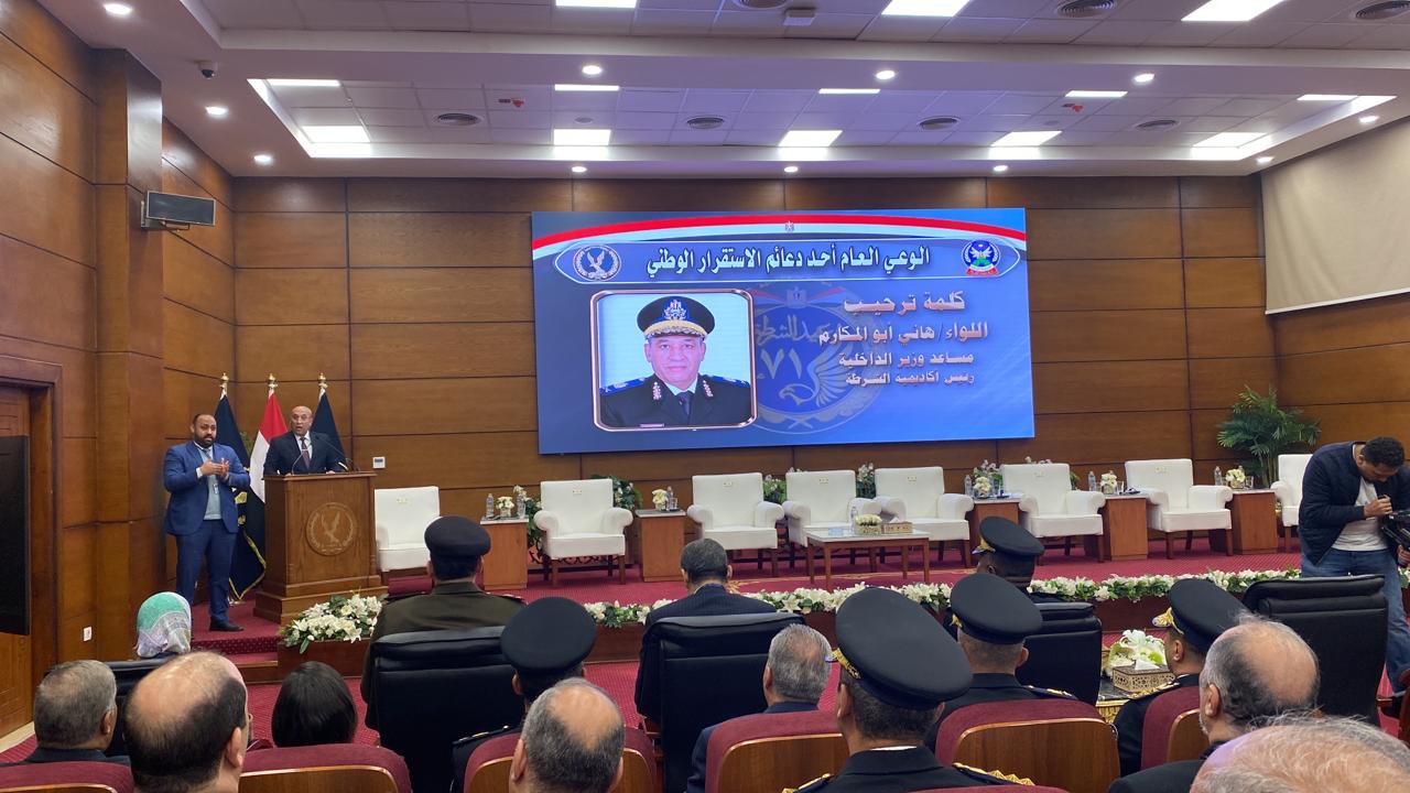 وبدوره قال اللواء هاني أبو المكارم مساعد وزير الداخلية رئيس أكاديمية الشرطة، إن وزارة الداخلية تولي اهتماما كبيرا بفعاليات الندوة بعنوان الوعى العام إحدى دعائم الاستقرار كما نقل تحيات اللواء محمود توفيق وزير الداخلية الذي يولي اهتماما للندوة تأكيد لاستراتيجية الوزارة، وذات الأبعاد الاجتماعية ورفع الوعي المجتمعي وكافة القضايا والتغييرات الدولية.