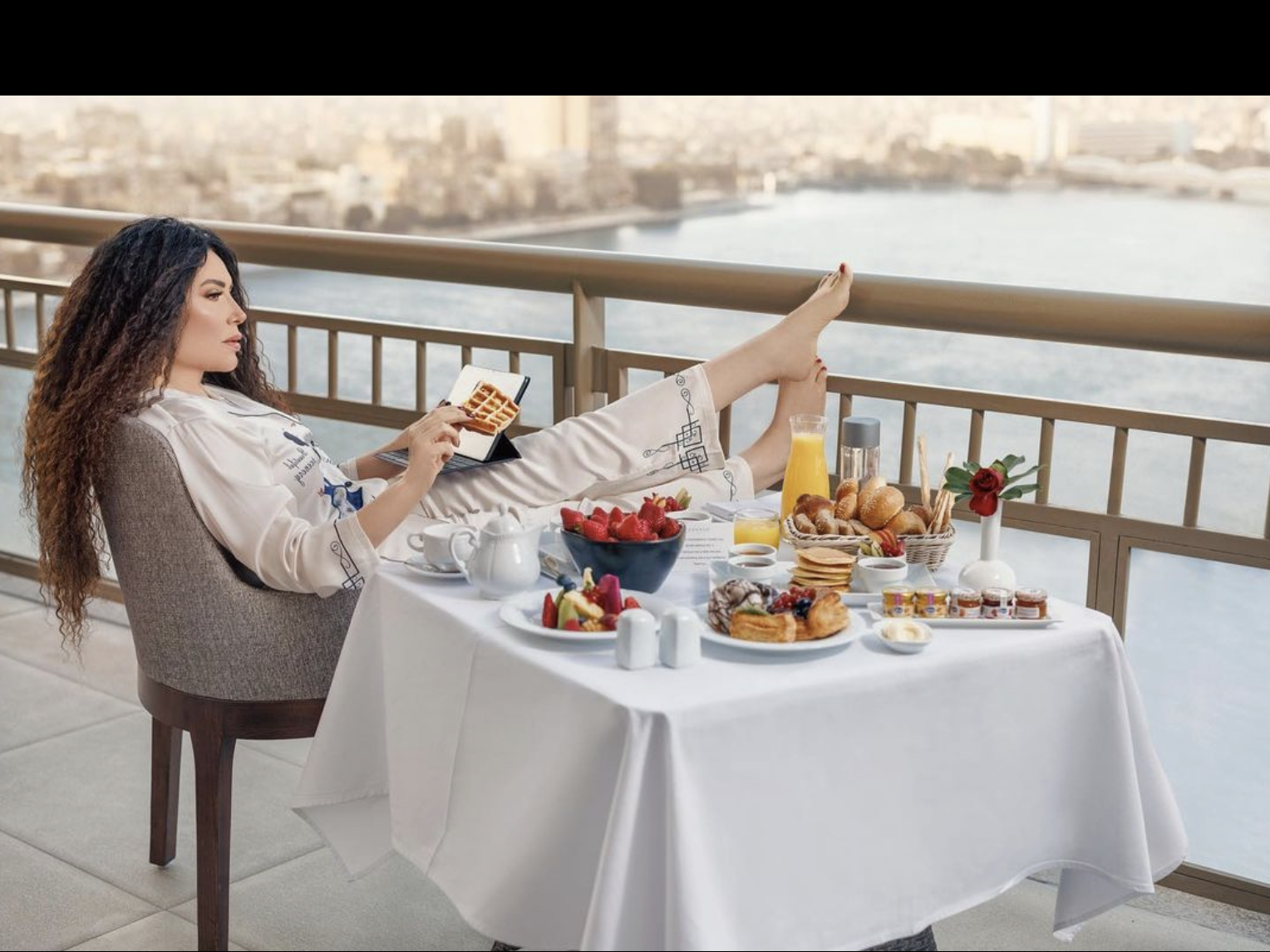 حيث شاركت عبير مع متابعيها عبر حسابها الرسمي على موقع تبادل الصور إنستجرام صورة لها وهي في البلكونة أثناء تناولها وجبة الفطار على موقع مطل على النيل، وهي ممدة بقدميها فوق طاولة وكتبت تعليق "فطار مع النيل".