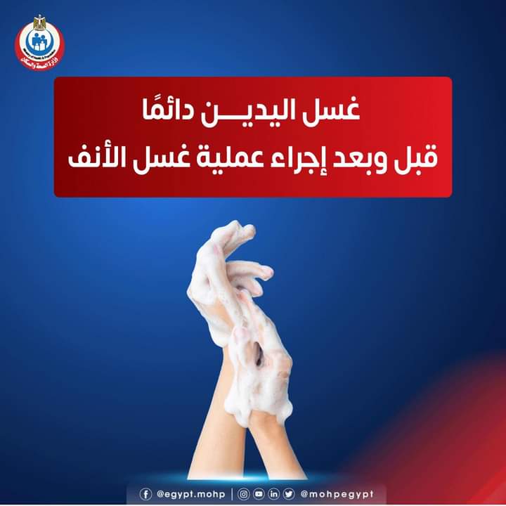 ١- غسل اليدين جيدا قبل وبعد إجراء عملية غسيل الأنف