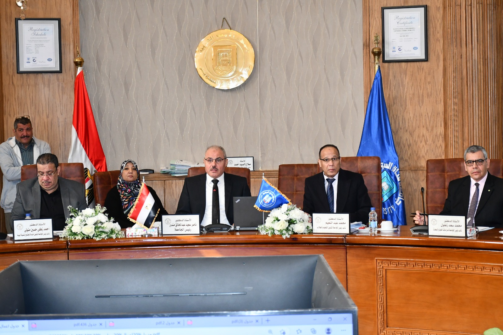 عقد مجلس جامعة قناة السويس، اليوم الثلاثاء، اجتماعه الدوري، برئاسة الدكتور ناصر مندور رئيس الجامعة، بحضور الدكتور أحمد زكي نائب رئيس الجامعة لشئون خدمة المجتمع وتنمية البيئة، والدكتور محمد عبد النعيم نائب رئيس الجامعة لشئون التعليم والطلاب، والدكتور محمد سعد زغلول نائب رئيس الجامعة لشئون الدراسات العليا والبحوث، والمحاسب خالد سويلم أمين عام الجامعة، وذلك بمقر قاعة مجلس جامعة قناة السويس.