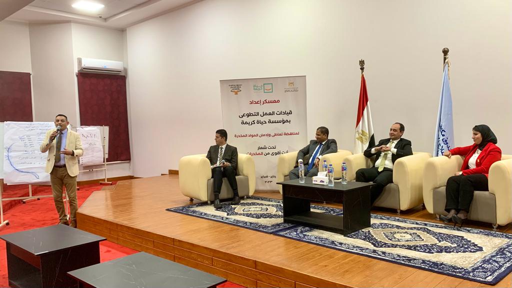 كما أعلنت قيادات العمل التطوعى لدى مؤسسة "حياة كريمة" عن رغبتهم في الانضمام لرابطة المتطوعين لدى صندوق مكافحة الإدمان للمشاركة في تنفيذ أنشطة الصندوق التوعوية لحماية الشباب من تعاطي المواد المخدرة وذلك بالتنسيق مع مؤسسة "حياة كريمة " مع استمرارهم كقيادات تطوعية بمؤسسة "حياة كريمة "تحت شعار " حياة كريمة بدون إدمان " أيضا مشاركة الصندوق في تنفيذ برامج لتوعية طلاب المدارس بأضرار الإدمان بالتعاون مع وزارة التربية والتعليم، بما يرفع الوعي لديهم بخطورة التعاطي ويزيد حاجز الرفض التام لمجرد التفكير في الإدمان مؤكدين على تقديم صندوق مكافحة وعلاج الإدمان برئاسة نيفين القباج وزيرة التضامن الاجتماعى ورئيس مجلس إدارة الصندوق،كافة أوجه الدعم لهم طوال فترة المعسكر التدريبي الأول للمتطوعين في محافظات " القليوبية، والفيوم، الشرقية، الجيزة، المنوفية، دمياط، كفر الشيخ، قنا "حيث تضمن المعسكر التدريبى على مدار 3 أيام سلسلة من المحاضرات،عن مهارات العمل الجماعي والتواصل ومهارة حل المشكلات، أيضا مهارة ضغط الأقران، بالإضافة الى أضرار تعاطى المواد المخدرة بأنواعها وتأثير تعاطى المخدرات التخليقية وارتباطها بالعنف وارتكاب الجرائم،وأيضا آليات الاكتشاف المبكر للتعاطي، وكيفية العلاج من الإدمان من خلال الخط الساخن "16023" لصندوق مكافحة الإدمان، كذلك تدريب المتطوعين المشاركين على كيفية بث رسائل توعوية لحماية الشباب من الوقوع في براثن الإدمان.