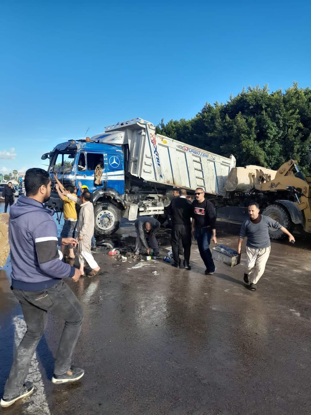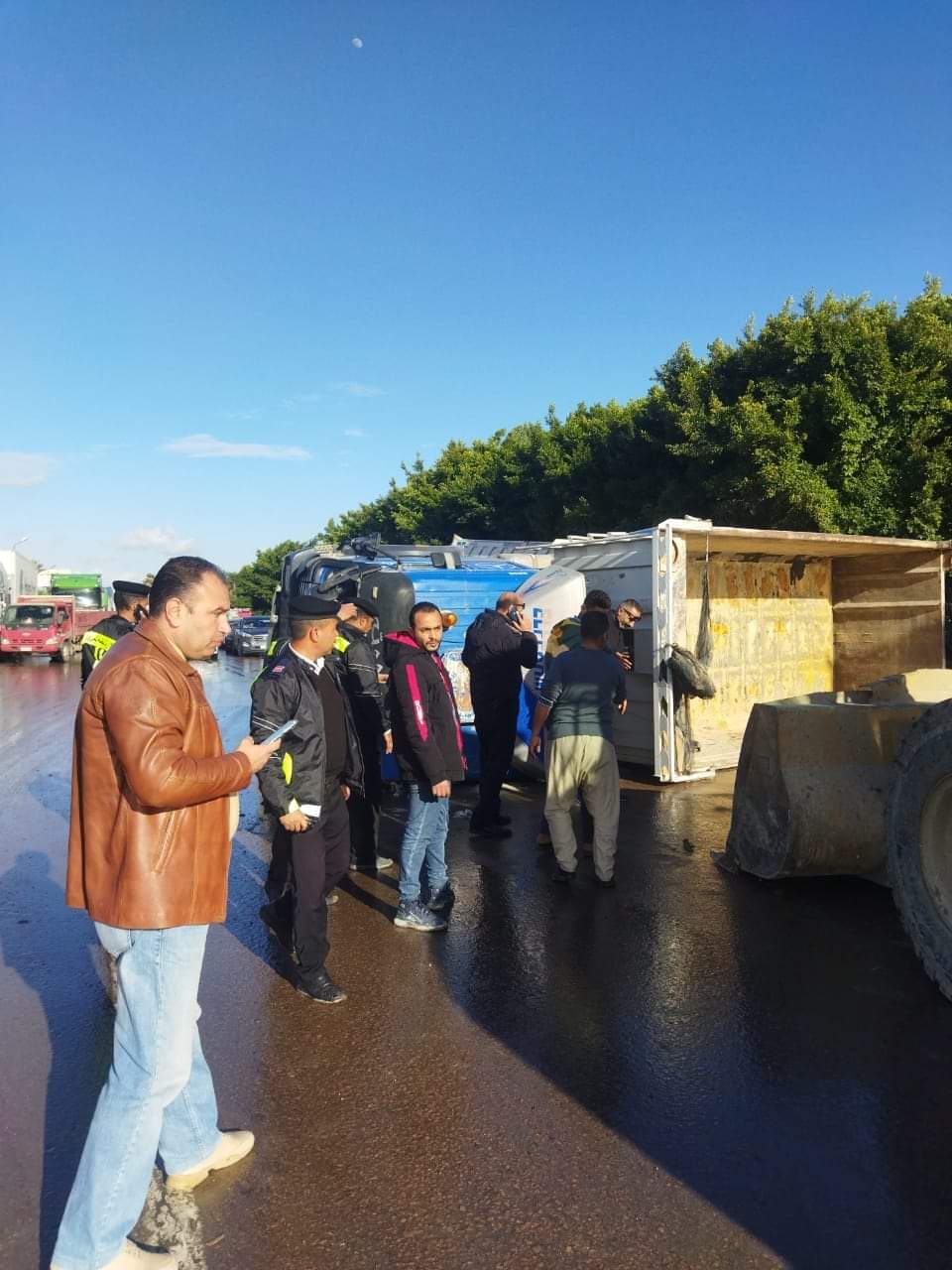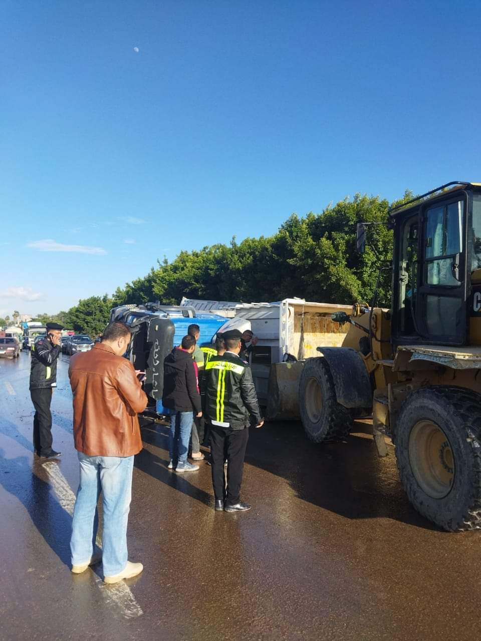 انقلاب سيارة نقل ثقيل بطريق الإسكندرية الصحراوي (صور)