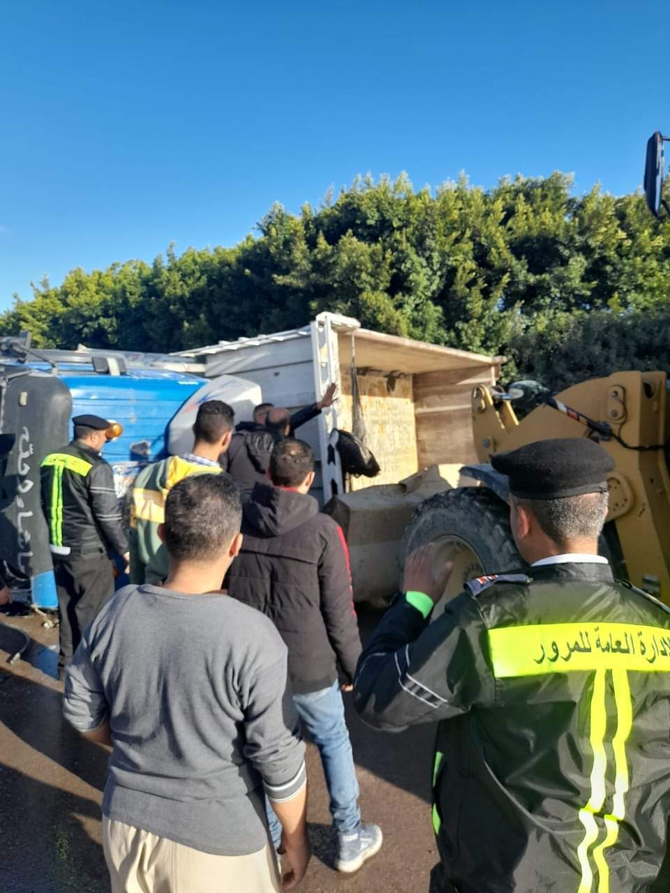 وتبين من المعاينة الأولية انقلاب سيارة نقل ثقيل فارغه علي أحد جانبيه بسبب السرعة والأمطار، وإصابة قائدها بإصابات طفيفة ولا تحتاج نقله للمستشفى، وتعطلت الحركة المرورية بالطريق قبل أن تتدخل إدارة المرور، وتعمل علي تسيير الحركة المرورية.