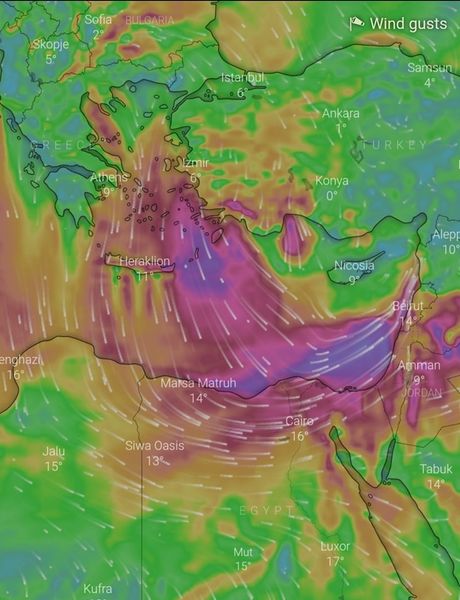 حالة الطقس، حذرت هيئة الأرصاد الجوية، من الحالة الجوية خلال الساعات القادمة، مشيرة إلى أنه هناك رياح شمالية باردة تهب علي مسطح البحر المتوسط بسرعات تتجاوز 60 كم/س، وقد تكون مثيرة للرمال والأتربة.