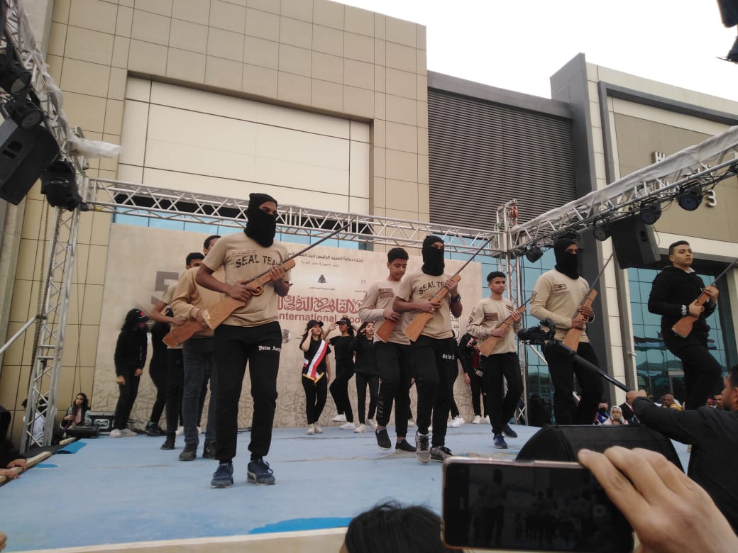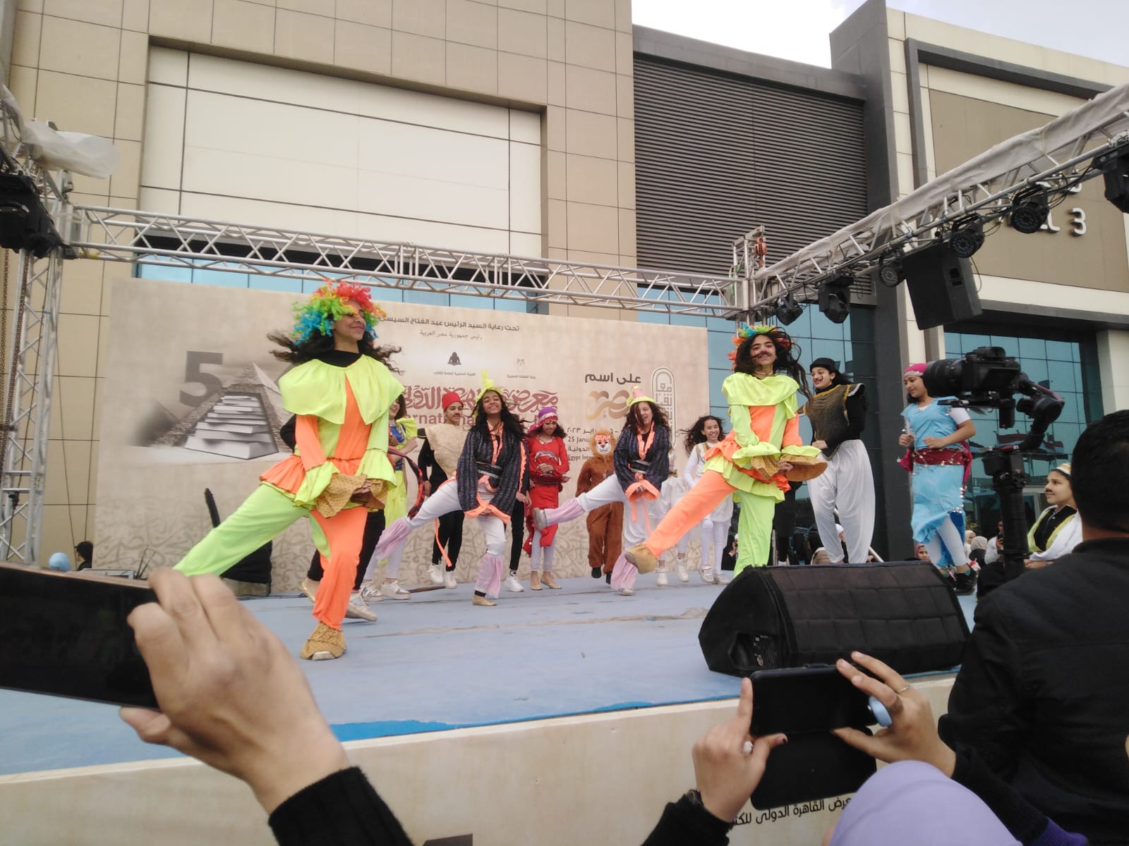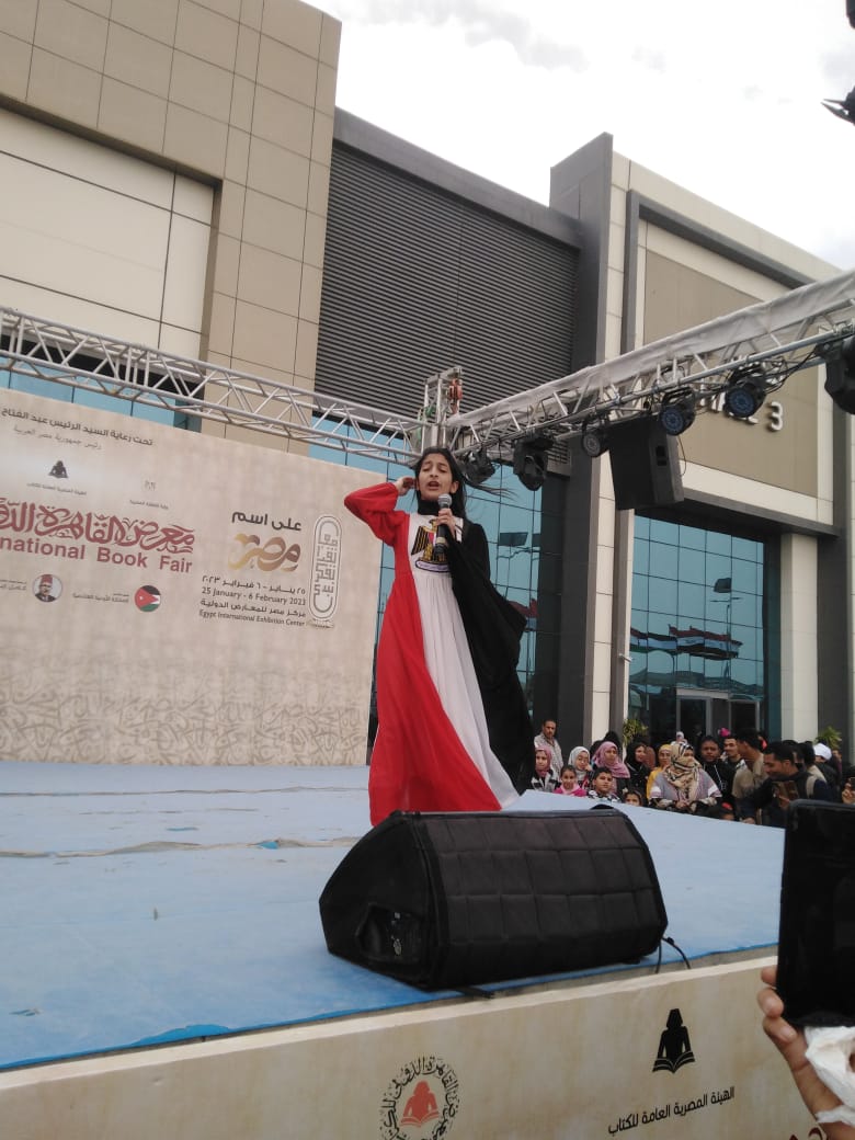 وتلى ذلك تقديم كورال أطفال وشباب عرضا استعراضيا على أنغام الأغاني الوطنية، مرتدين الزي العسكري، ليجذب جمهور وزوار معرض القاهرة للكتاب، ويتفاعل معه الحضور بالتحية والتصفيق.