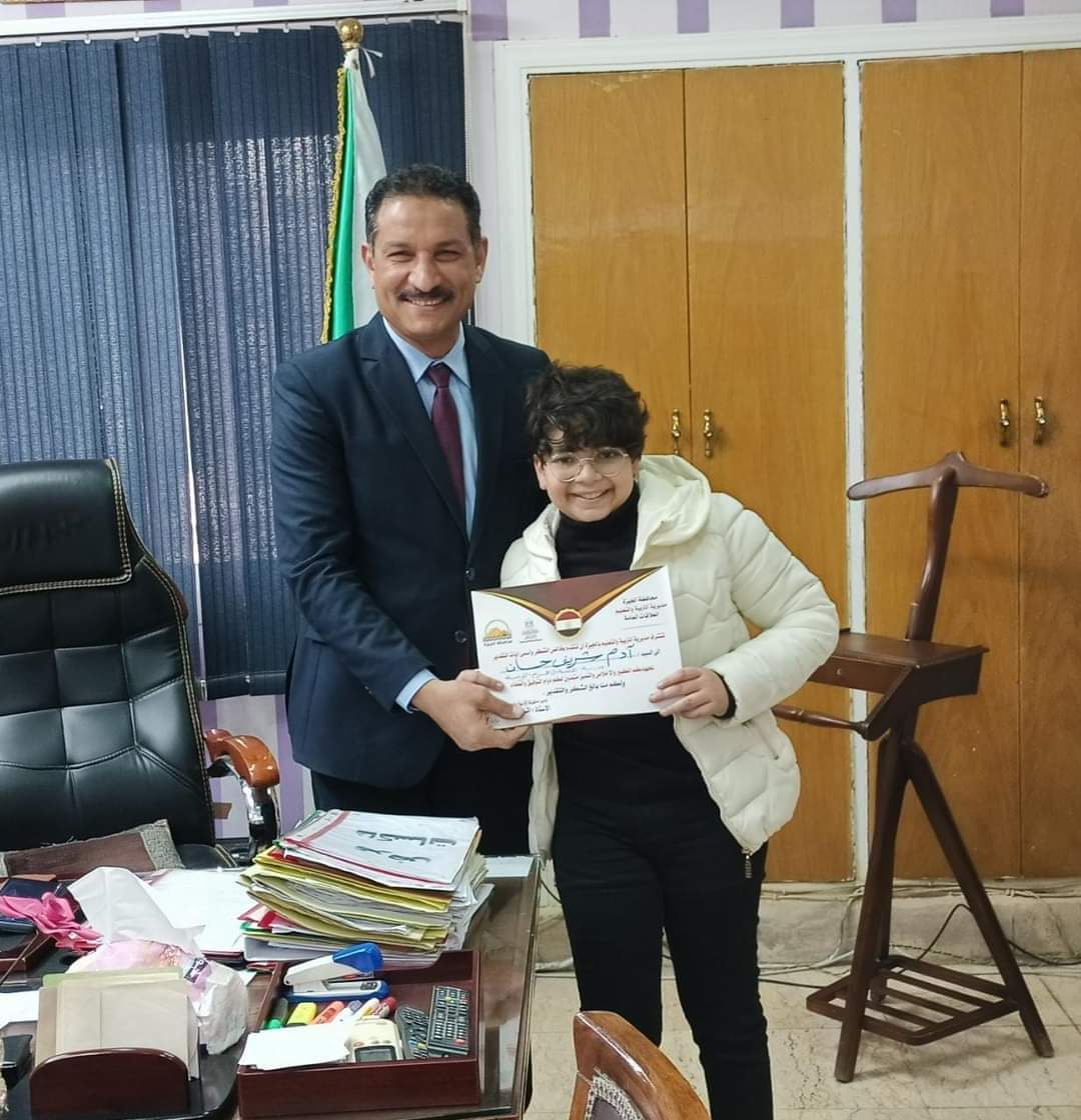 استقبل أشرف سلومة، وكيل وزارة التربية والتعليم بالجيزة، التلميذ آدم شريف حسان، الطالب بمدرسة هضبة الأهرام الرسمية، المصاب بالتوحد، وذلك بناء على رغبة الطالب في مقابلة وكيل وزارة التعليم في الجيزة.