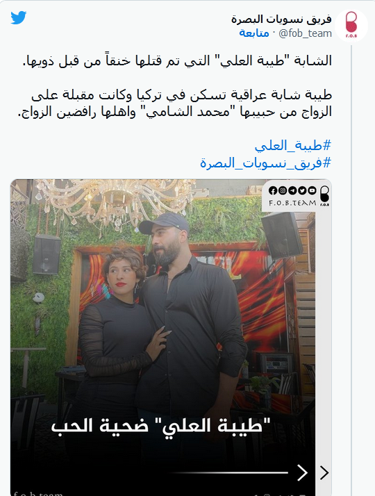 وأفادت المعلومات -التي لا يمكن التأكد من صحتها ودقتها- بأن "طيبة كانت موجودة في بغداد وبأنها ناشدت الشرطة المجتمعية عقب تعرضها للتهديد، وكانت على وشك العودة إلى تركيا والزواج من شاب سوري يُدعى محمد".
