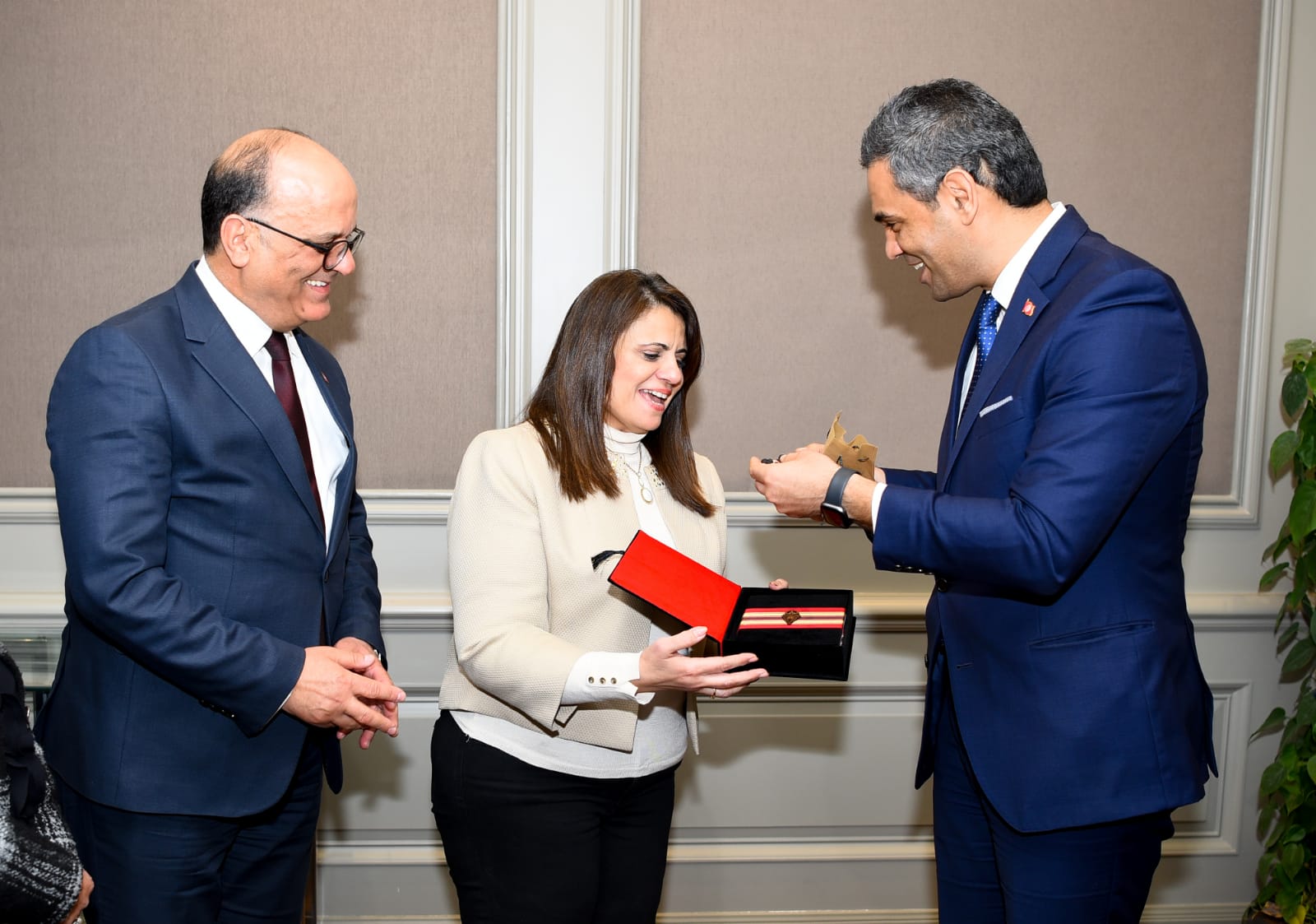 وفي ختام اللقاء أهدت السفيرة سها جندي درع الوزارة إلى السيد نصر الدين نصيبي وزير التشغيل والتكوين المهني التونسي، معربة عن شكرها لسعادته؛ لإهدائه إياها نسخة نادرة من المصحف الشريف من تصنيع مشروع المرأة المعيلة وسبحة من حجر الصندل، كما وجه سيادته الدعوة للسفيرة سها جندي لزيارة تونس وهو ما رحبت به سيادتها واعدة بتلبية الدعوة في أقرب وقت.
