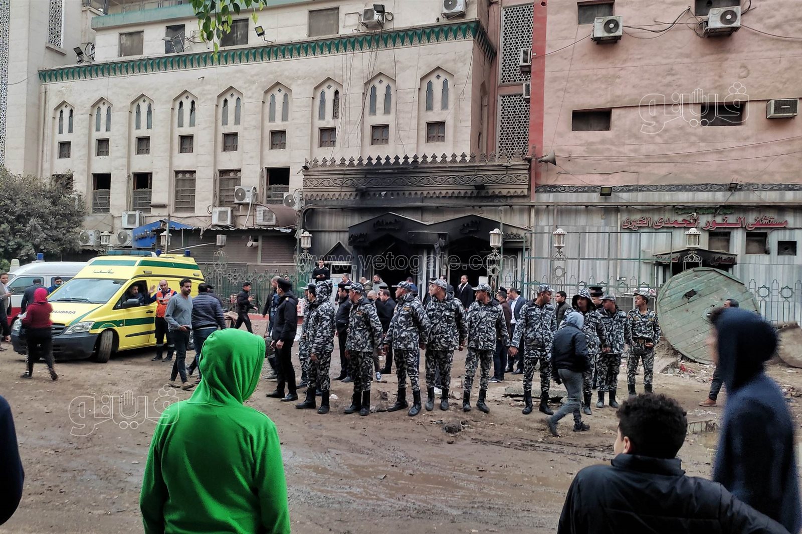 12 سيارة إسعاف بحريق مستشفى النور المحمدي