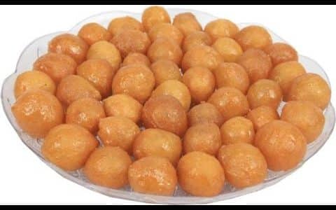 وتحمر فى زيت غزير ساخن وبعد التحمير تصفى وتوضع بالشربات الثقيل البارد وتصفى وتقدم.