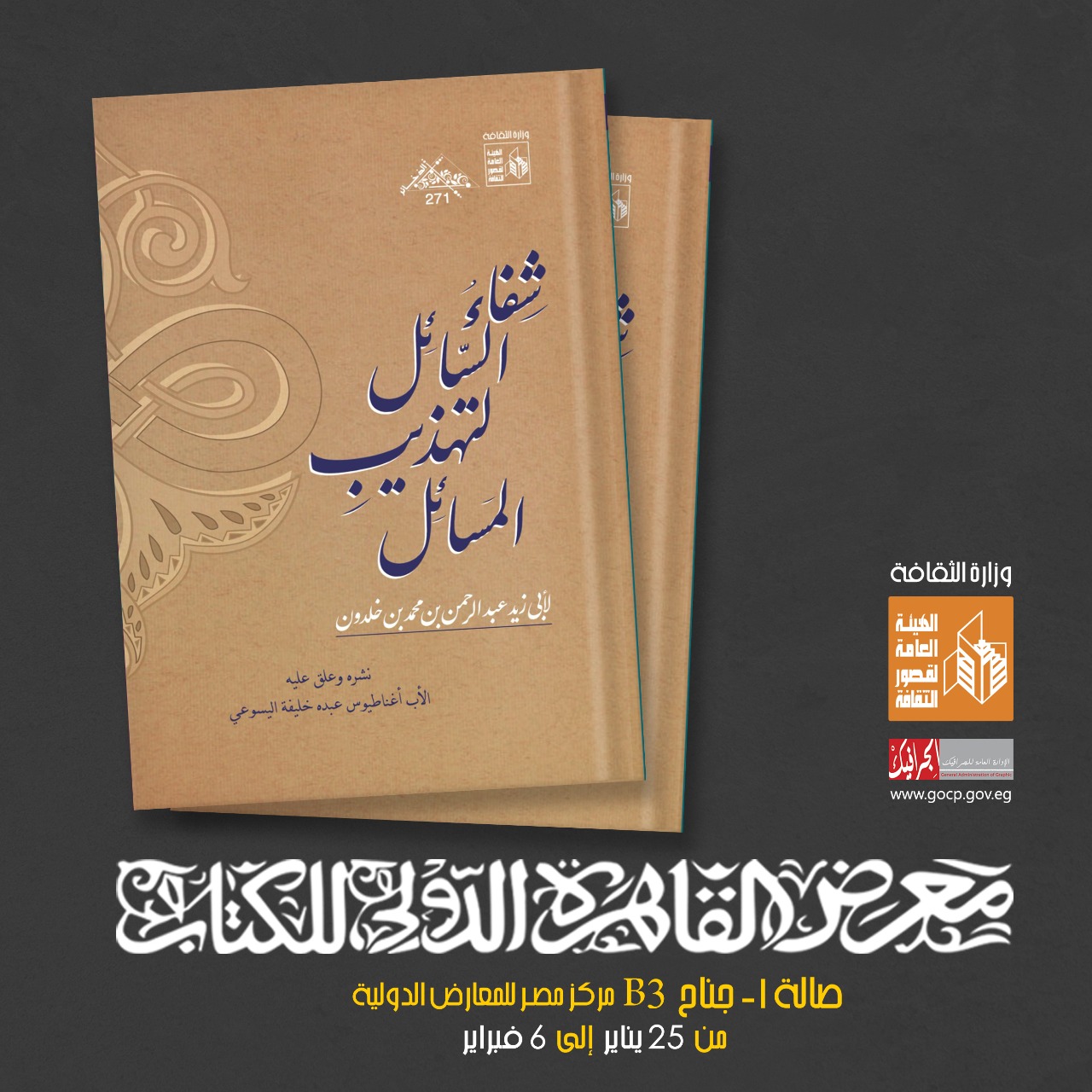 كتاب "شفاء السائل لتهذيب المسائل" لأبي زيد عبد الرحمن بن محمد بن خلدون، تعليق الأب أغناطيوس عبده خليفة اليسوعي، وفيه يجتهد "ابن خلدون" في تحديد بعض المشاكل المتعلّقة بالصوفية ويعتمد على من سبقه من مؤرّخي التصوّف وعلى كتب الهداية الوافية في استخلاص كنه الطريقة وتمييزها من سائر العلوم والطرق.