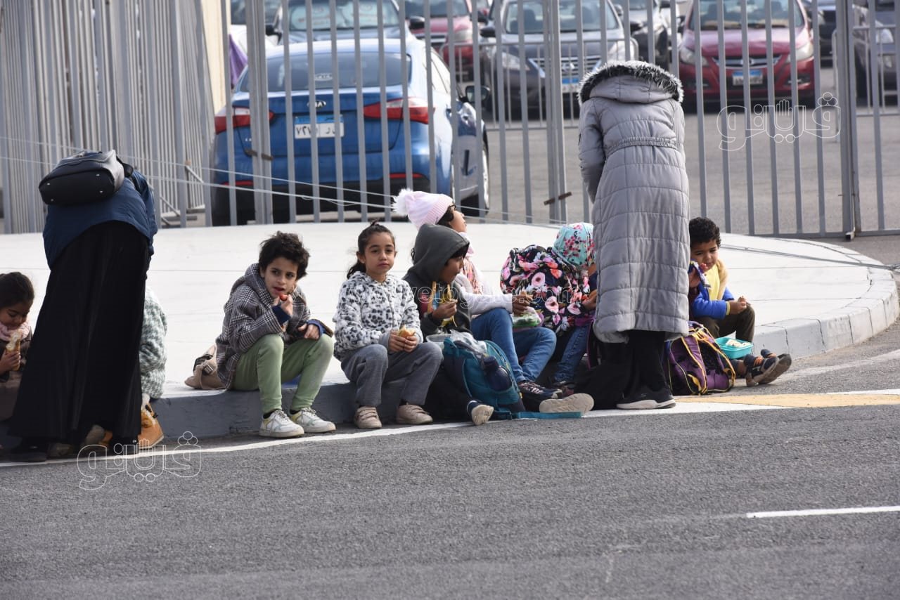 فى معرض الكتاب وسط انتظار وشوق لبدء جولاتهم داخل أجنحة ودور النشر المشاركة بالقاهرة الدولى للكتاب.