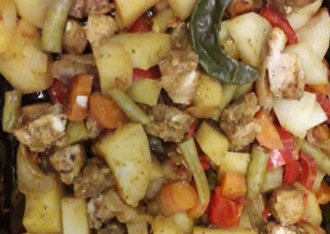 -بعدها نقوم بقلى شرائح البطاطس والجزر والكوسة، ثم ننشلهم من الزيت زنرصهم فى صينية فرن.