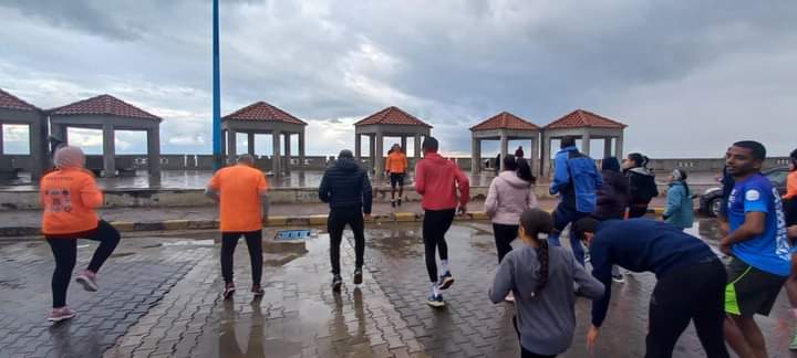 ممارسة الرياضة على كورنيش البحر بالإسكندرية رغم سوء الأحوال الجوية (صور)