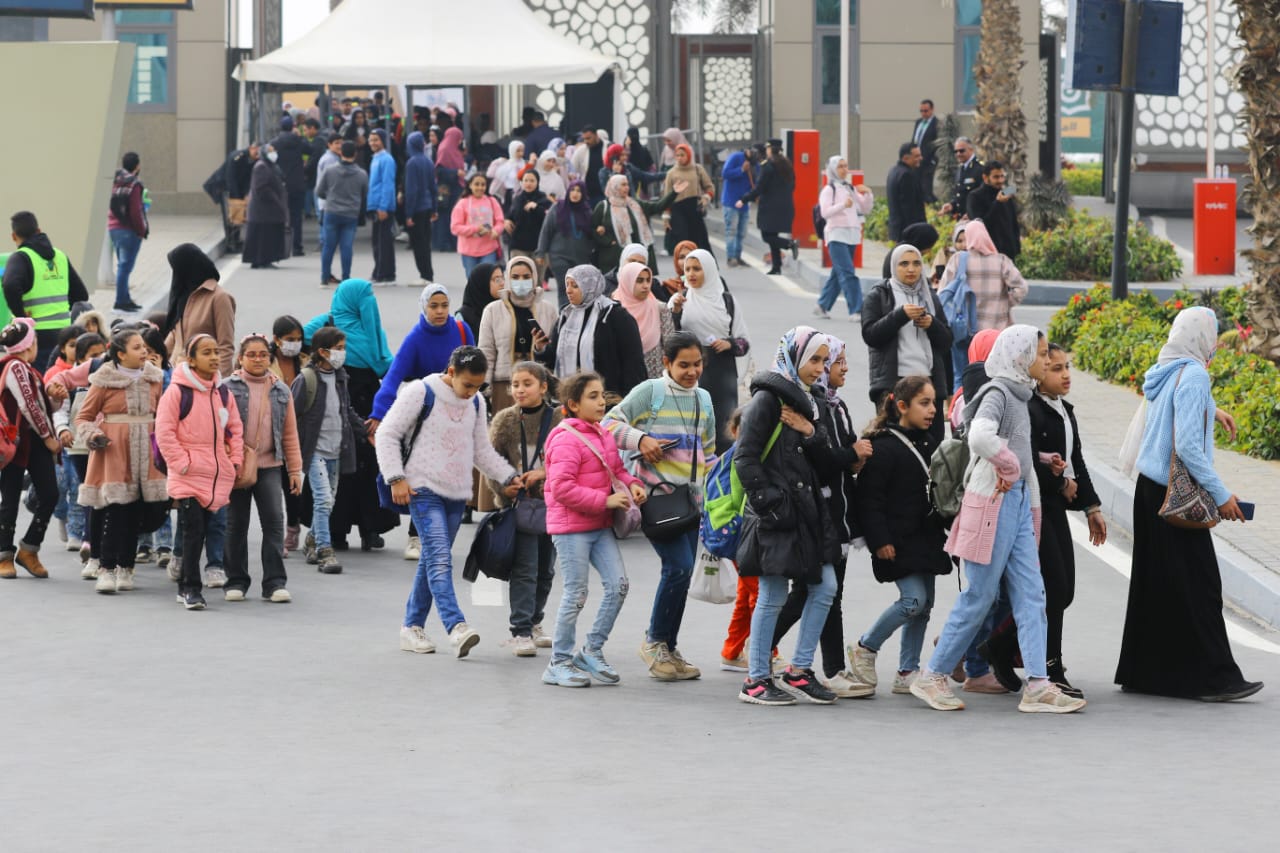 وخصصت إدارة معرض القاهرة فريق عمل، لاستقبال الرحلات بشكل يومي، ومرافقتهم في جولاتهم بالمعرض.