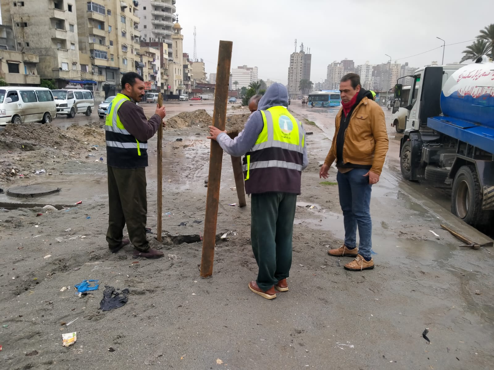 وقامت الأجهزة التنفيذية بحي العامرية أول تحت إشراف السيد موسى رئيس الحي بمتابعة أعمال تصريف وكسح مياه الأمطار ومتابعة مدى كفاءة الشنايش بشوارع.