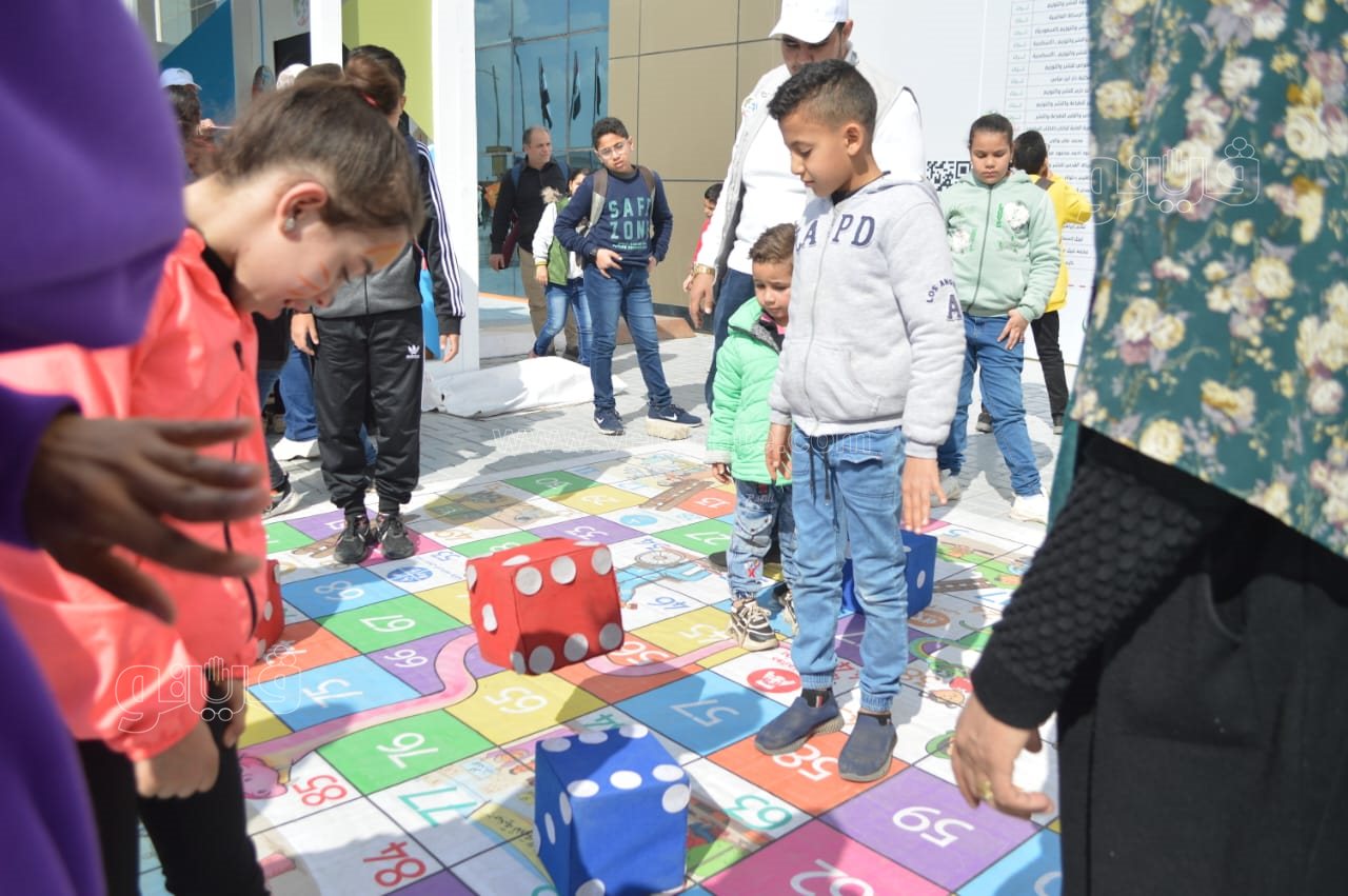 وخطف الأطفال المتواجدون بالمعرض الأنظار اليوم الجمعة، وذلك من خلال الأنشطة التي قاموا بها في ساحات المعرض، حيث بدأت بلعب السلم والثعبان، والبازل، والكرة وغيرها.