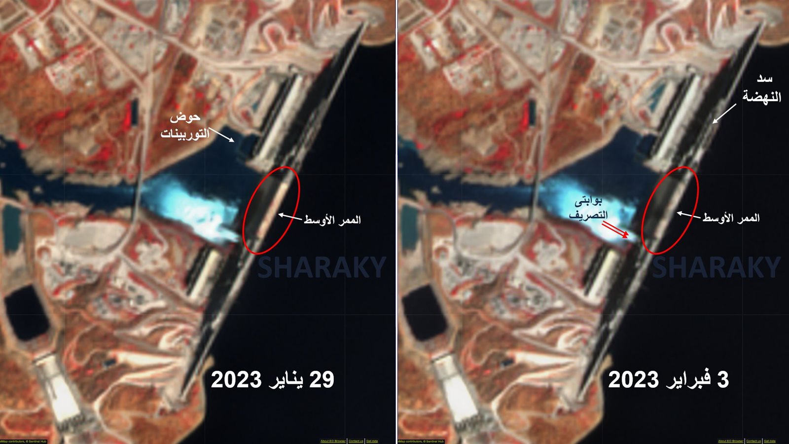 وفي نهاية يناير الماضي أكد الدكتور عباس شراقي أن إثيوبيا قامت بتصريف 2 مليار متر مكعب من مخزون سد النهضة بدون كهرباء، موضحًا أن التخزين الثالث لسد النهضة توقف فى 11 أغسطس 2022 عند منسوب 600 متر فوق سطح البحر، باجمالى تخزين 17 مليار م3.