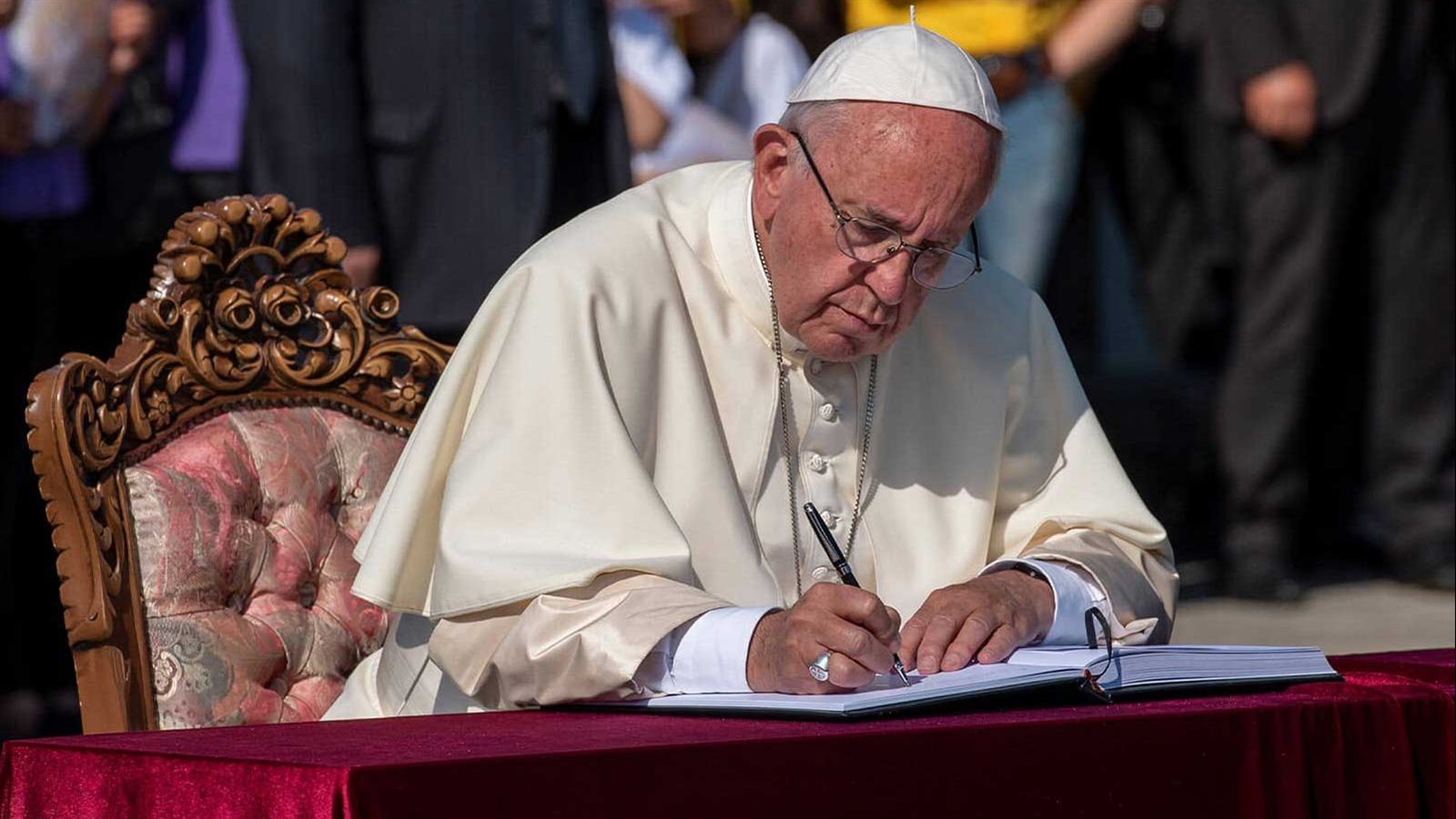 و اختار بابا الفاتيكان والذي ولد باسم "خورخي ماريو بيرجوليو" اسم فرانسيس تأسيًا بالقديس فرنسيس الأسيزي، أحد معلمي الكنيسة الجامعة، «والمدافع عن الفقراء، والبساطة، والسلام».