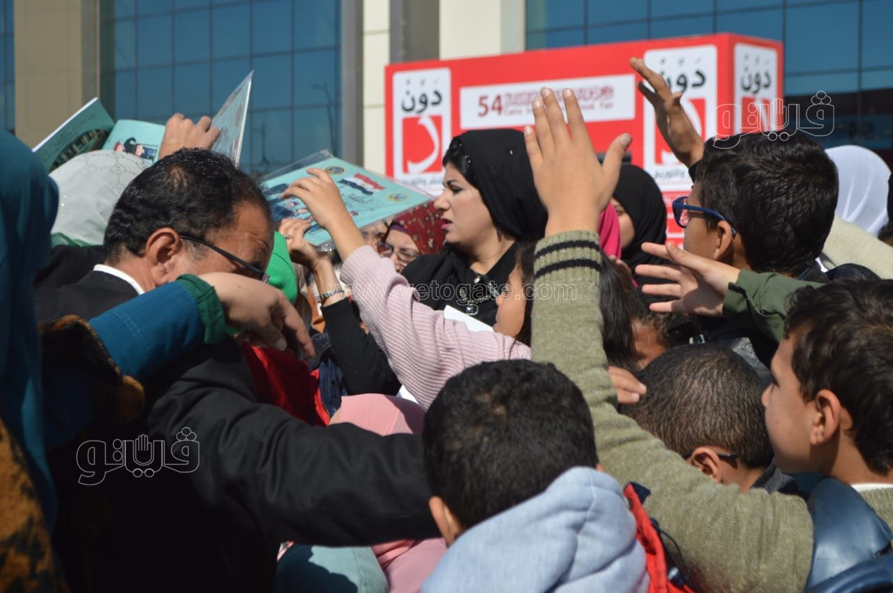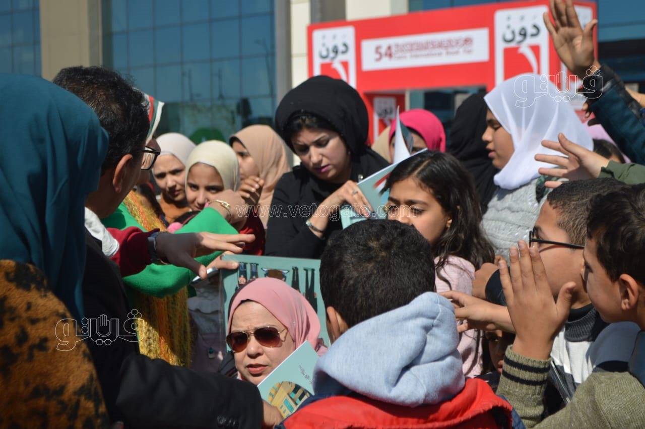 وتجمع العشرات من الأطفال منذ قليل حول الكتب التي توزع مجانا للجمهور، وسط حالة من البهجة والسعادة بين الحاضرين.