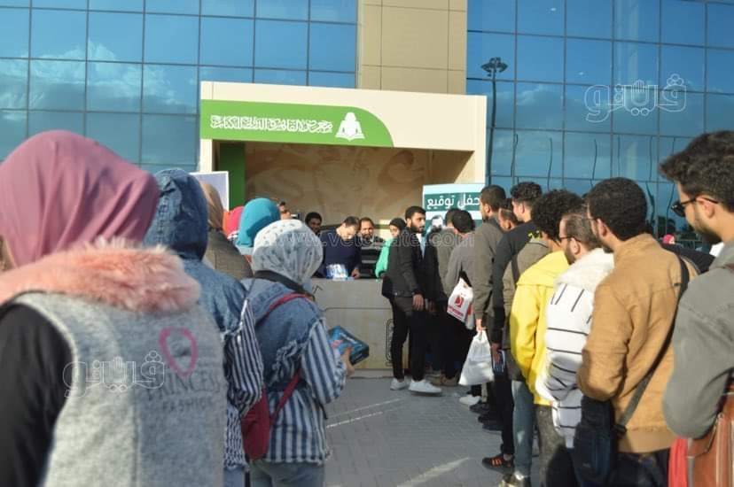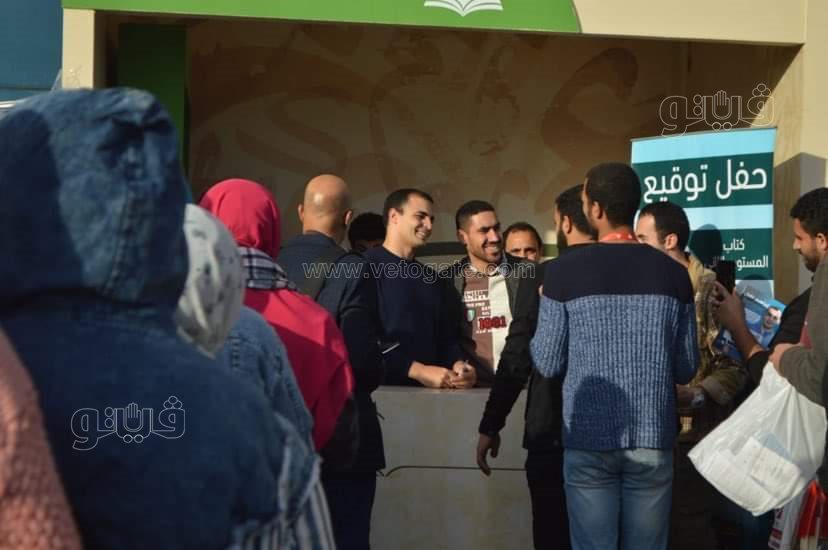 وداخل أجنحة معرض الكتاب رصدت (فيتو) طوابير طويلة من مختلف الفئات العمرية وتصدر الشباب المشهد في حفل توقيع مؤلفات صانع المحتوى الرقمي إبراهيم عادل وصاحب برنامج تعليم اللغات الأجنبية الذي يحمل اسم (طليق) وthe amrican english.