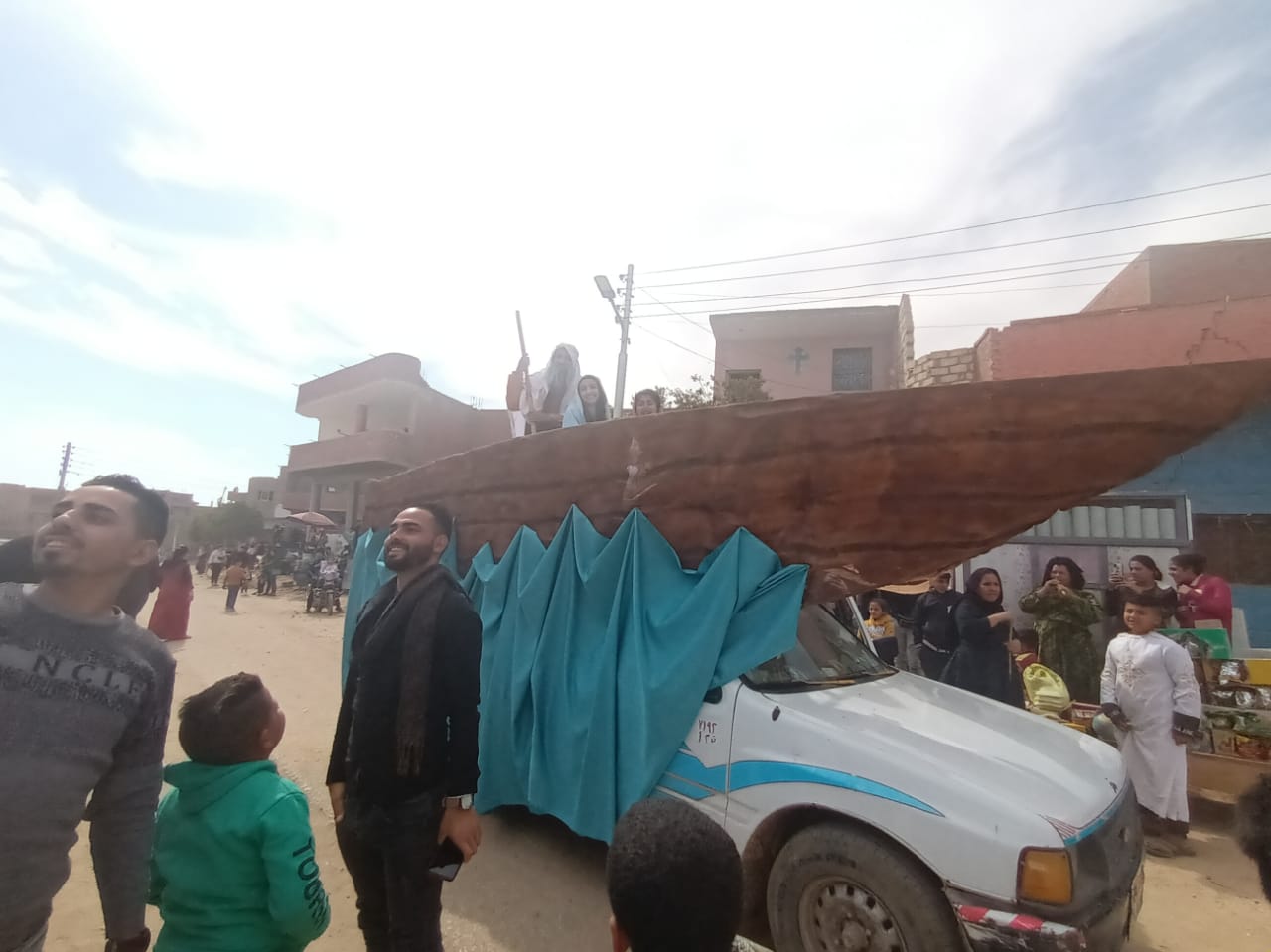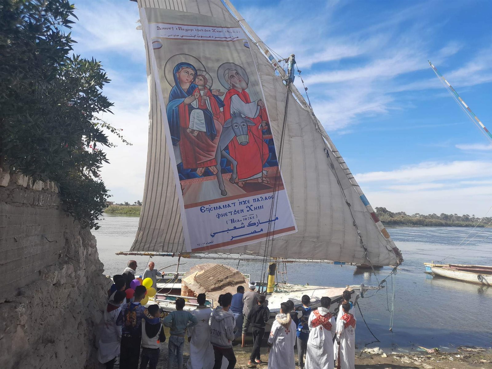 حيث تم تجهيز مراكب عليها صور مريم العذراء والعائلة المقدسة ويبحرون في النيل فى مراكب مزينة بالصور في مواكب تاريخية عبر مراكب شراعية تحمل أيقونات السيدة العذراء في مشهد احتفالي مهيب تذكارًا لدخول العائلة المقدسة مصر وعبورها على كوم ماريا.