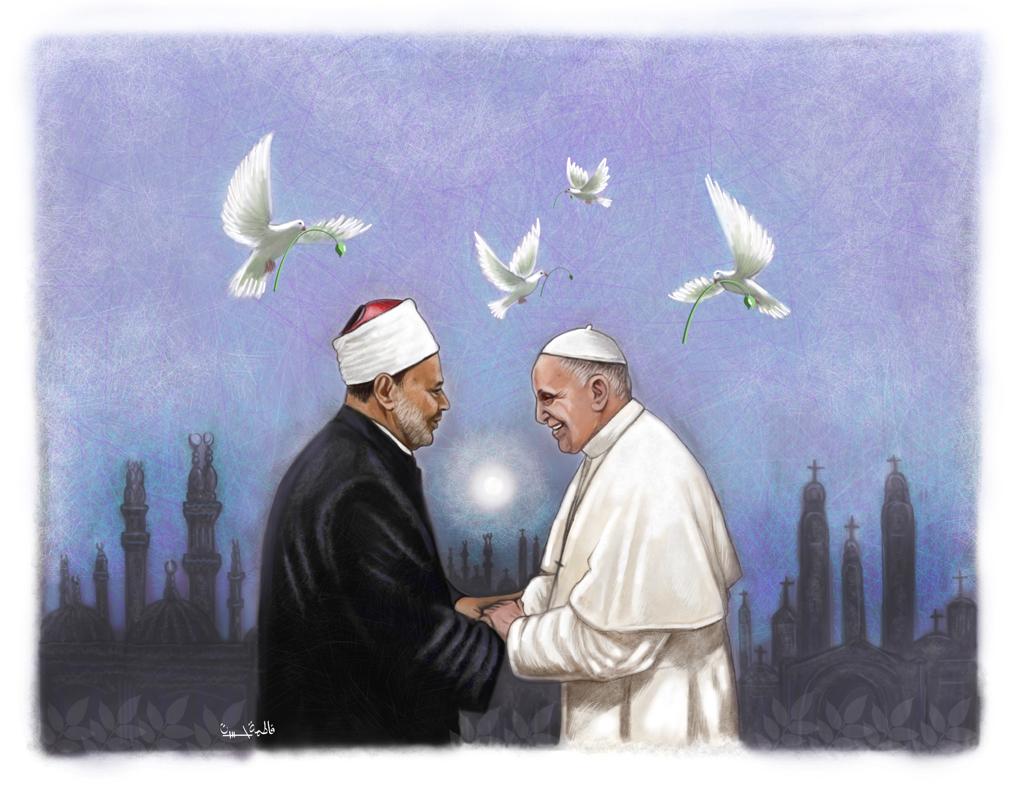 بورتريه للطيب وبابا الفاتيكان في احتفالية الأزهر باليوم العالمي للأخوة الإنسانية