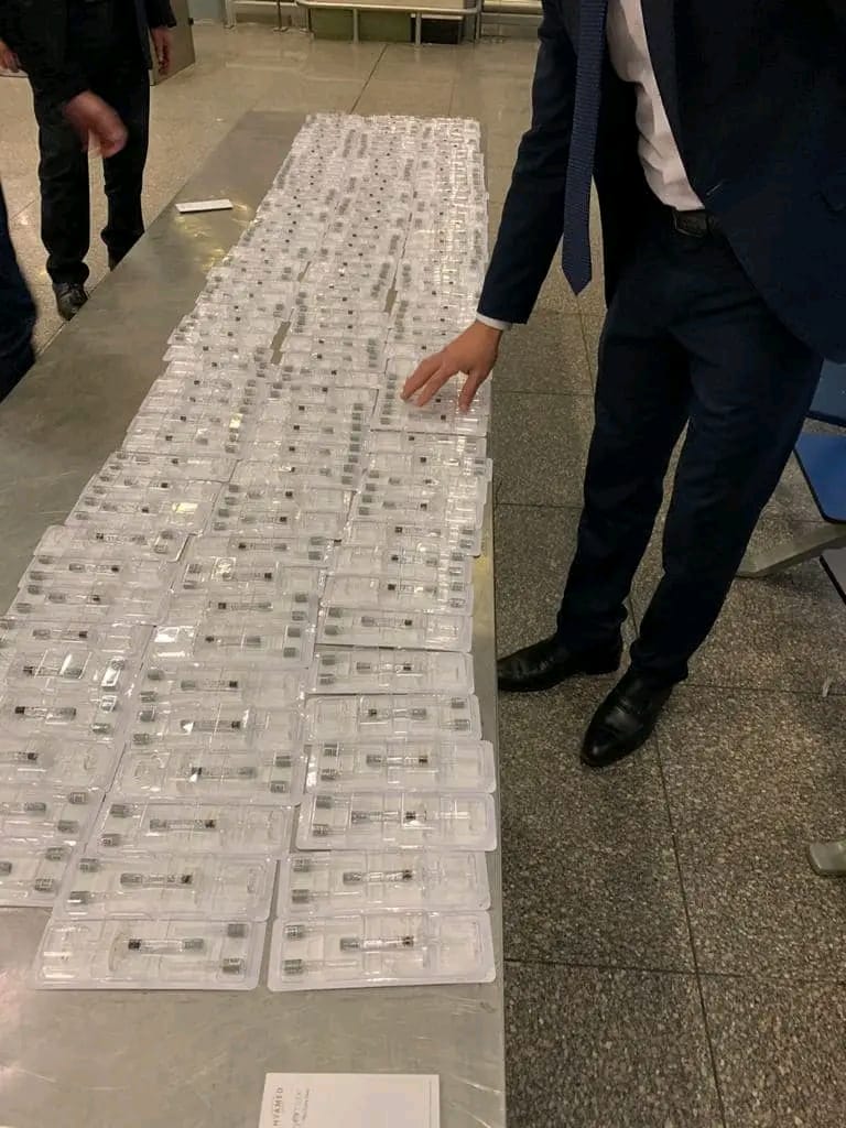 وبالعرض على أحمد محمد فوزي مدير إدارة الحركة، قرر تكليف إسلام ماهر ومحمود عبد المطلب مأمور الجمرك، بتفتيش حقائب الراكب فتبين وجود ١٣٩ حقنة مرقوم عليها hyamax plus خاصة بتجميل البشرة مخبأة بين طيات الملابس