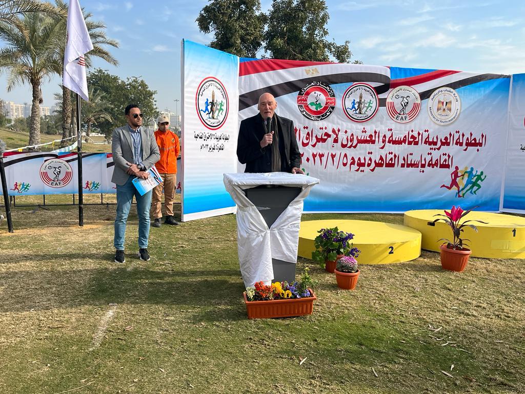 وبعد طابور العرض تم عزف السلام الوطني لجمهورية مصر العربية ثم تلاوة آيات من القرآن الكريم ثم كلمة ترحيب من الدكتور سيف شاهين رئيس اتحاد ألعاب القوى ورئيس اللجنة المنظمة والذي رحب بالسادة الحضور مؤكدا أن مصر هدفها إنجاح البطولة بغض النظر عن الفائز لأن الفائز النهائي هو الرياضة العربية وأعقبها كلمة من الدكتور حبيب ربعان رئيس الاتحاد العربي للألعاب القوى والذي وجه الشكر للدولة المصرية وفخامة الرئيس عبد الفتاح السيسي رئيس الجمهورية على هذا التنظيم المميز والاستضافة الكريمة وحسن الاستقبال للبعثات والوفود العربية.