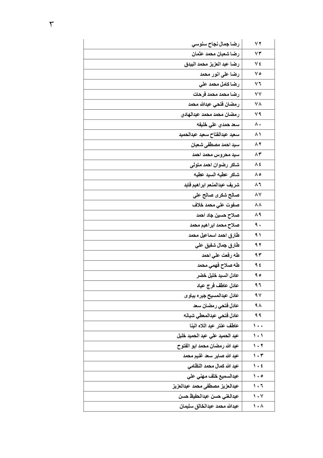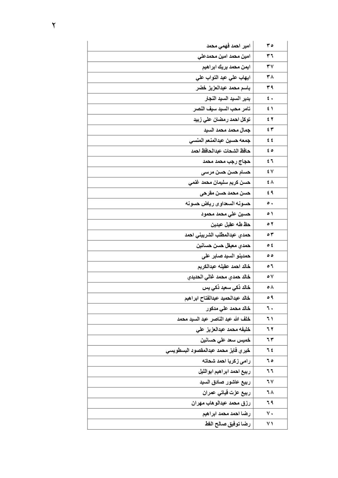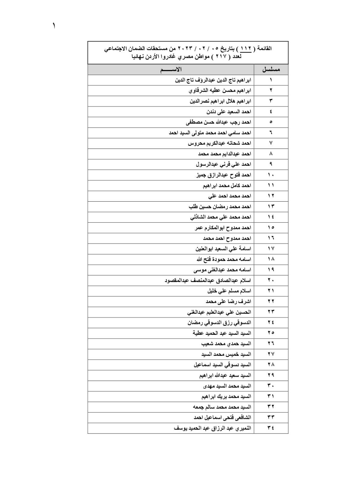 وأضاف الملحق العمالي أنه طبقا لإجراءات المؤسسة العامة للضمان الاجتماعي بالأردن،سيتم استرجاع المبالغ غير المصروفة بعد مرور 50 يوما من تاريخ الإعلان عن تحويل المستحقات، مشيرا إلى أنه يتم بشكل مستمر التنسيق والتجهيز لإرسال باقي الدفعات لمستحقيها تباعا، فور تدقيقها من الجهات المعنية حفاظا على حقوق المواطنين المستحقين لهذه الدفعات، وتضم القائمة الجديدة الأسماء المرفقة مع هذا البيان::